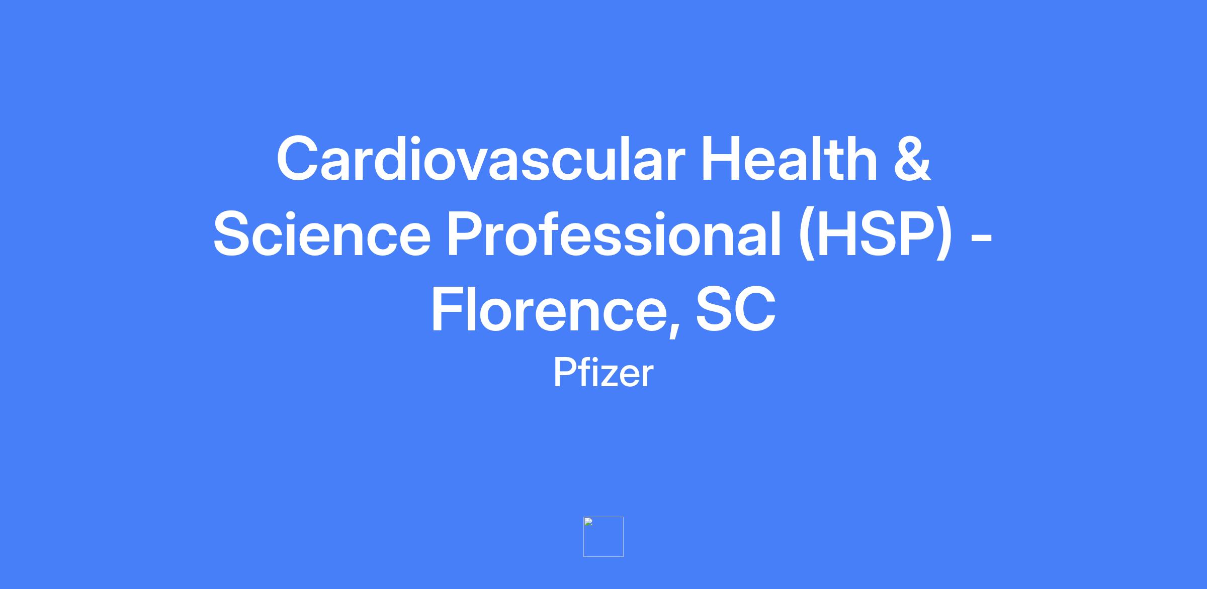 Role: Cardiovascular Health & Science Professional (HSP) - Florence, SC. The CARD Health & Science Professional (HSP) is responsible for increasing territory sales and relationship development with assigned customers and accounts by engaging in product promotion and determining the best strategies to manage their business. A CARD HSP should possess customer, market, and business acumen, analytical skills, and strong product and disease state knowledge; demonstrate ability to drive sales, promotional and strategic business development and management skills, and in-depth customer engagement expertise both in-person and virtually; demonstrate outstanding communication and teamwork skills; be adept in the operation of digital and virtual tools; and be effective at working remotely in collaboration with cross-functional internal teams to address customer needs and compliantly deliver on Pfizer business objectives. Location: Florence, SC.