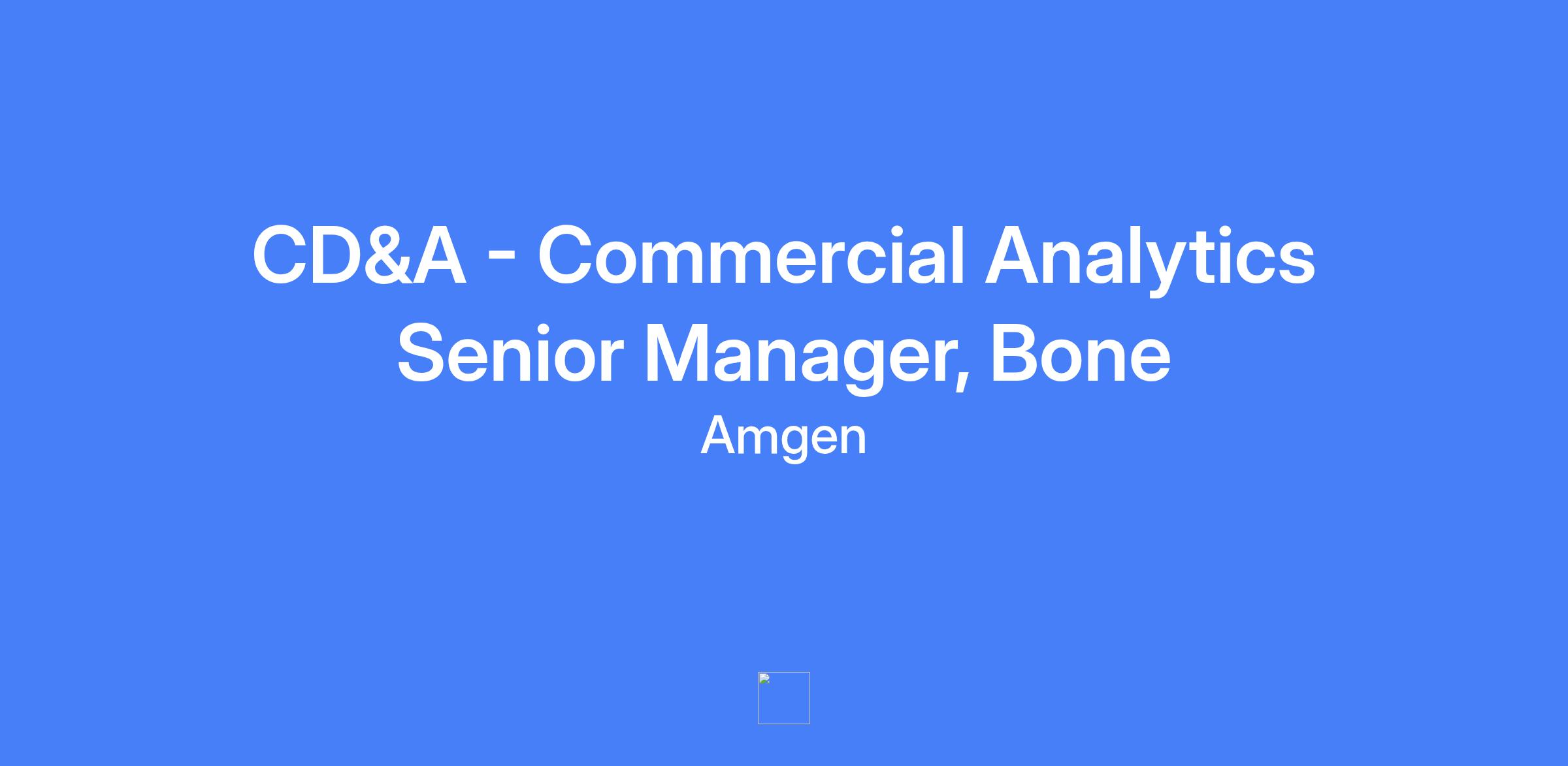 CD&A - Commercial Analytics Senior Manager, Bone Health. Lead insights generation by integrating multiple secondary data sources and collaborating with Commercial Data and Analytics colleagues to develop a comprehensive understanding of the Bone Health market and provide tactical recommendations. Must clearly present findings and recommendations to Senior Leadership. Flexible commuter role to Thousand Oaks, CA; on-site a minimum of 3 days a week.