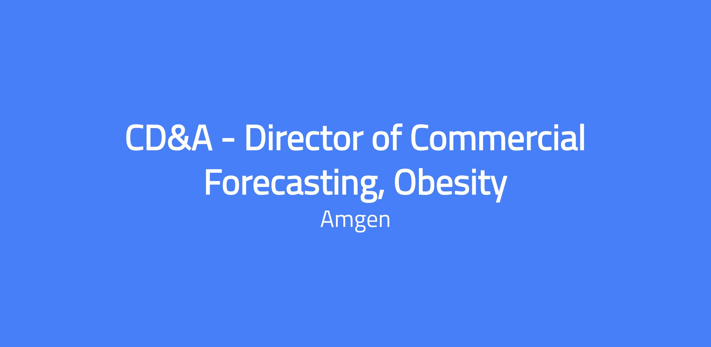 CD&A - Director of Commercial Forecasting, Obesity. Leads forecasting efforts for Amgen’s Obesity business unit, overseeing a team of full-time Amgen employees and partnering with Commercial leadership to provide strategic guidance and data-backed insights that shape future strategies.