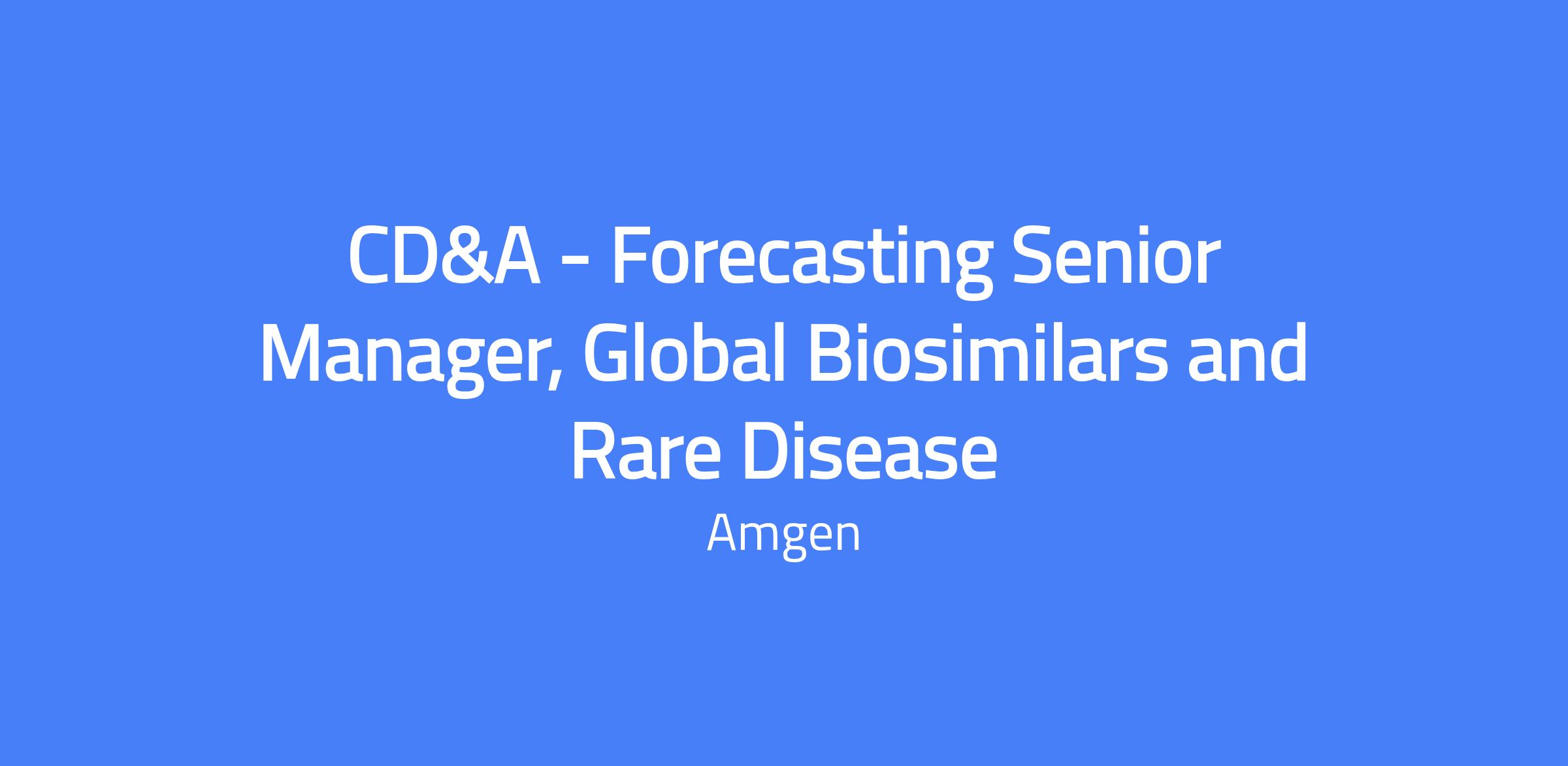 CD&A - Forecasting Senior Manager, Global Biosimilars and Rare Disease. The role partners with Commercial leadership to provide data-backed insights that drive commercial success for Global Biosimilars and Rare Disease. You will influence multiple stakeholders, manage forecasting discussions, and contribute to the development of global forecasting strategies.
