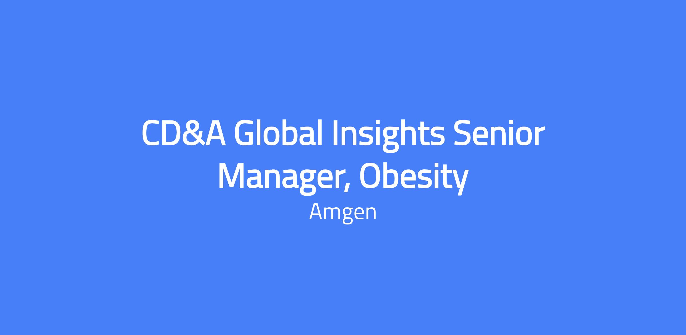 CD&A Global Insights Senior Manager, Obesity. The role drives commercial insights that shape strategy and key decisions for Amgen's obesity pipeline, integrating diverse sources to inform internal governance and product strategy. The position collaborates with global partners across Marketing, Value & Access, Forecasting, and Competitive Intelligence to deliver actionable insights.