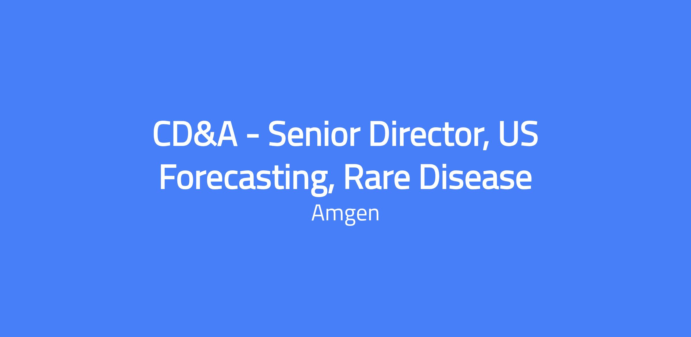 CD&A - Senior Director, US Forecasting, Rare Disease. Oversees forecasting for several assets and diseases within the Rare Disease business unit, leading a team, and partnering with Commercial leadership to provide data-backed insights. Flexible commuter role to Thousand Oaks, CA or Deerfield, IL; on-site 2-3 days a week.