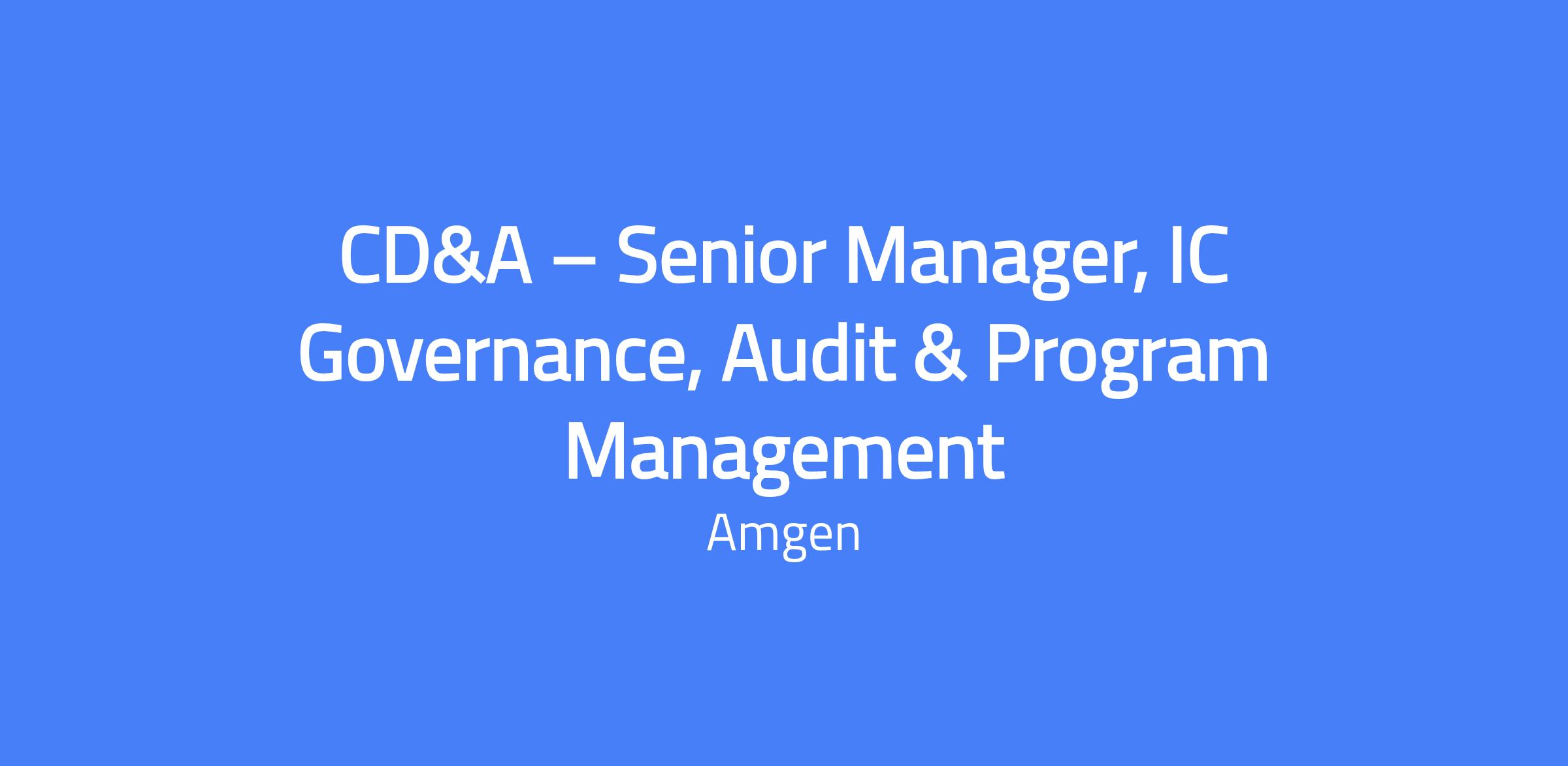 The Senior Manager, IC Governance, Audit & Program Management leads IC governance, owns enterprise-level IC audit readiness, and drives disciplined program management across IC design and operations for U.S. field incentive plans. This role partners with Sales Operations, Finance, HR, Compliance, IT, and Audit to ensure programs meet business needs while maintaining control and compliance. Location: Thousand Oaks, CA or Deerfield, IL; on-site 2–3 days a week.