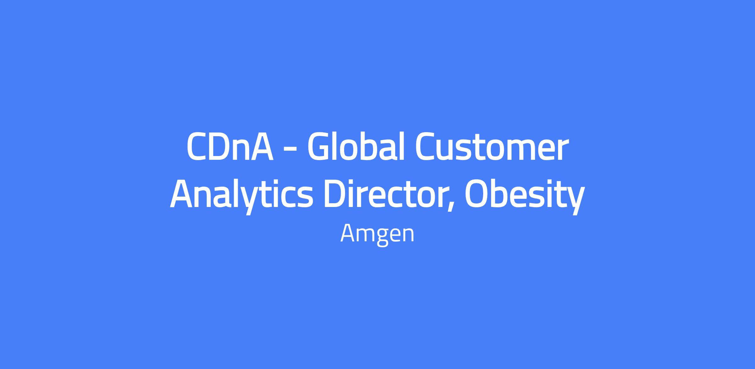 CDnA - Global Customer Analytics Director, Obesity. The role is responsible for driving customer insights that shape strategy and key decisions for the obesity pipeline. Leads a team that generates insights by integrating multiple sources, including internal knowledge, strategic secondary analytics, and primary market research. Acts as a collaborative business partner to align business questions with insight generation approaches and influence franchise/product strategy, brand building, and governance decisions.