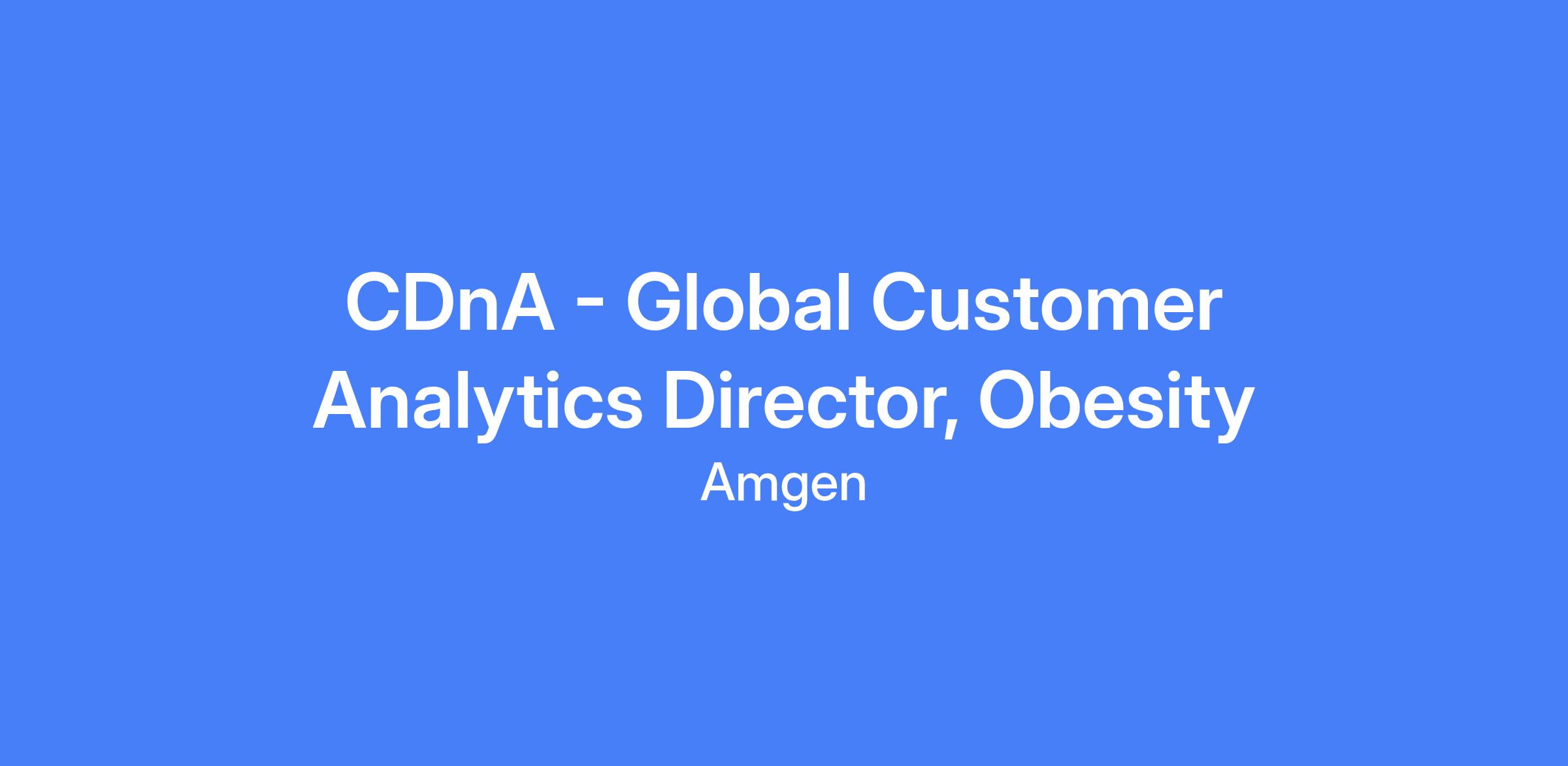 CDnA - Global Customer Analytics Director, Obesity. The role is responsible for driving customer insights that shape strategy and key decisions for the obesity pipeline. Leads a team that generates insights by integrating multiple sources, including internal knowledge, strategic secondary analytics, and primary market research. Acts as a collaborative business partner to align business questions with insight generation approaches and influence franchise/product strategy, brand building, and governance decisions.