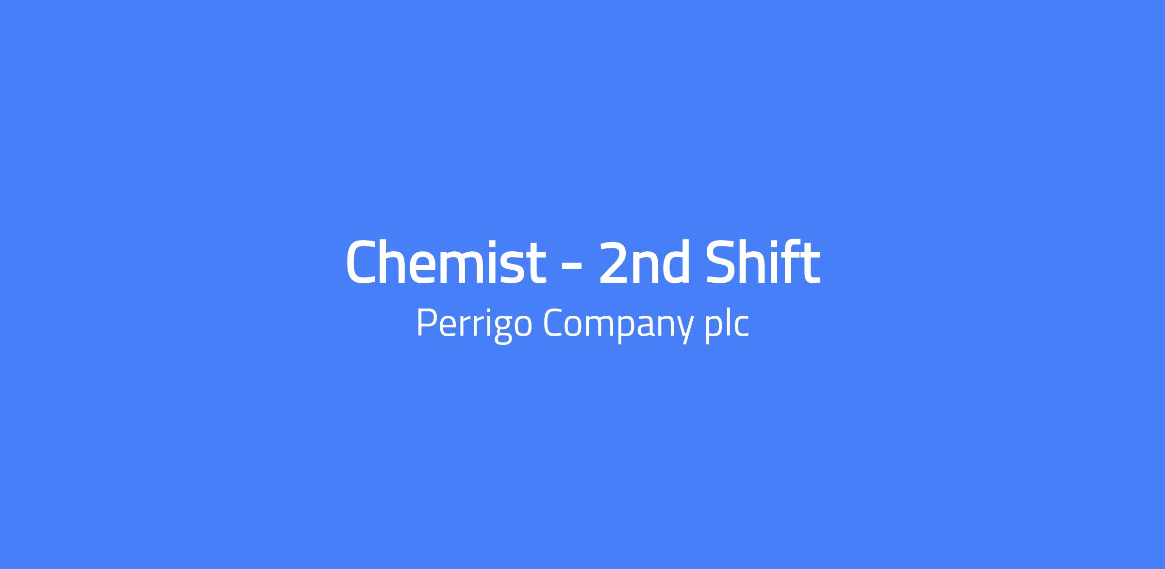 Perrigo Nutritionals, located in Georgia, VT, is looking for a Chemist to join their team. This is a 2nd shift position working 4:00pm - 12:30am, Tuesday - Saturday.