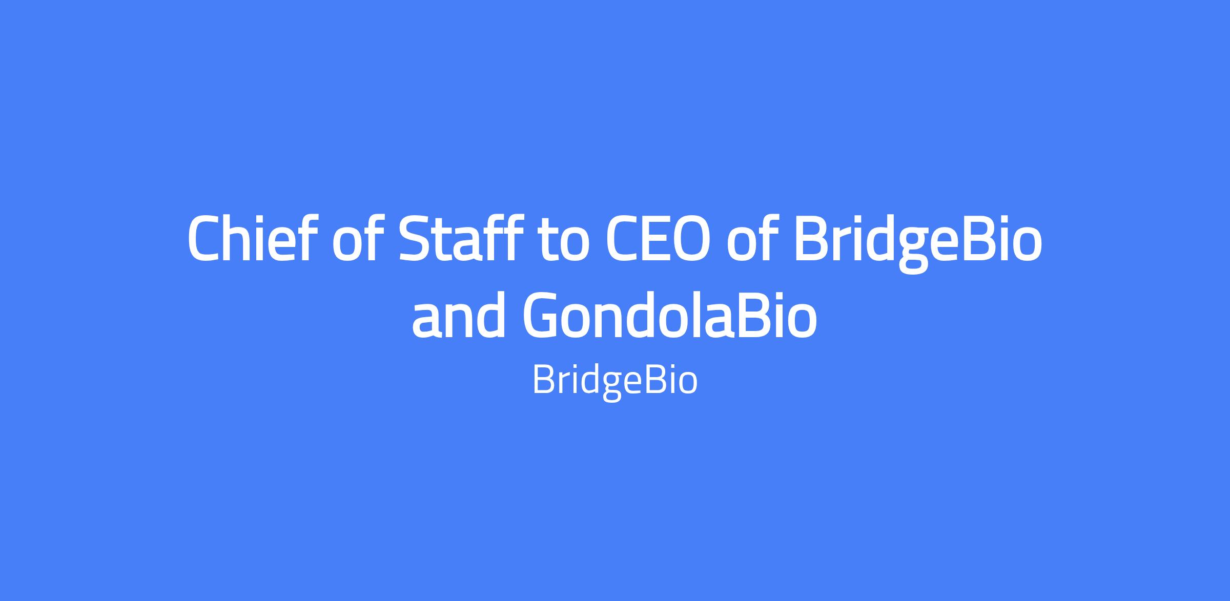 Chief of Staff to CEO of BridgeBio and GondolaBio