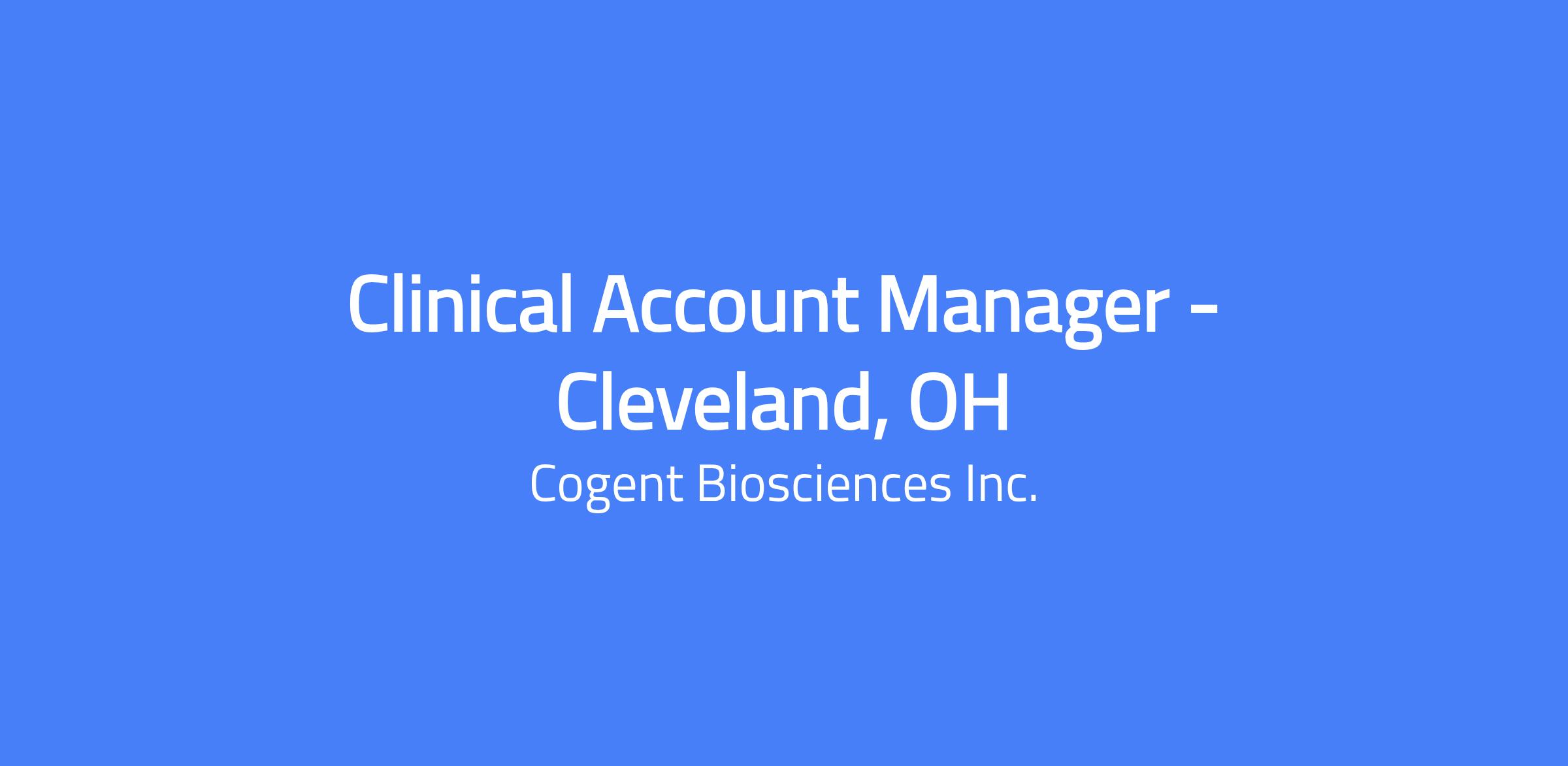 The Role: The Clinical Account Manager (CAM) will serve as a critical member of the Customer Engagement Team and will have an exciting opportunity within Cogent to potentially launch Bezuclastinib in multiple indications across three disease states. The Clinical Account Manager will be responsible for meeting sales targets and utilizing all available resources while tailoring them to meet the customer's needs through a deep understanding of their requirements.  Behaviors that are critical for success in this role are collaboration, communication, planning, relationship building, and the ability to execute tactical initiatives and provide timely feedback. CAMs will report directly to the Regional Business Director.
