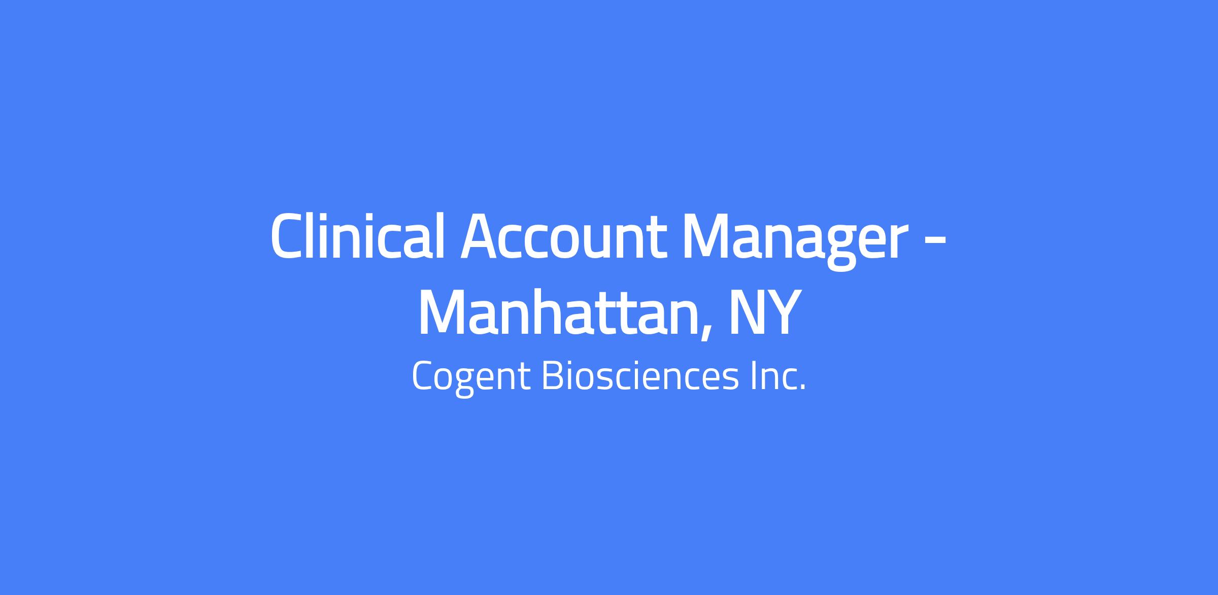 The Role: The Clinical Account Manager (CAM) will serve as a critical member of the Customer Engagement Team and will have an exciting opportunity within Cogent to potentially launch Bezuclastinib in multiple indications across three disease states. The Clinical Account Manager will be responsible for meeting sales targets and utilizing all available resources while tailoring them to meet the customer's needs through a deep understanding of their requirements.  Behaviors that are critical for success in this role are collaboration, communication, planning, relationship building, and the ability to execute tactical initiatives and provide timely feedback. CAMs will report directly to the Regional Business Director.