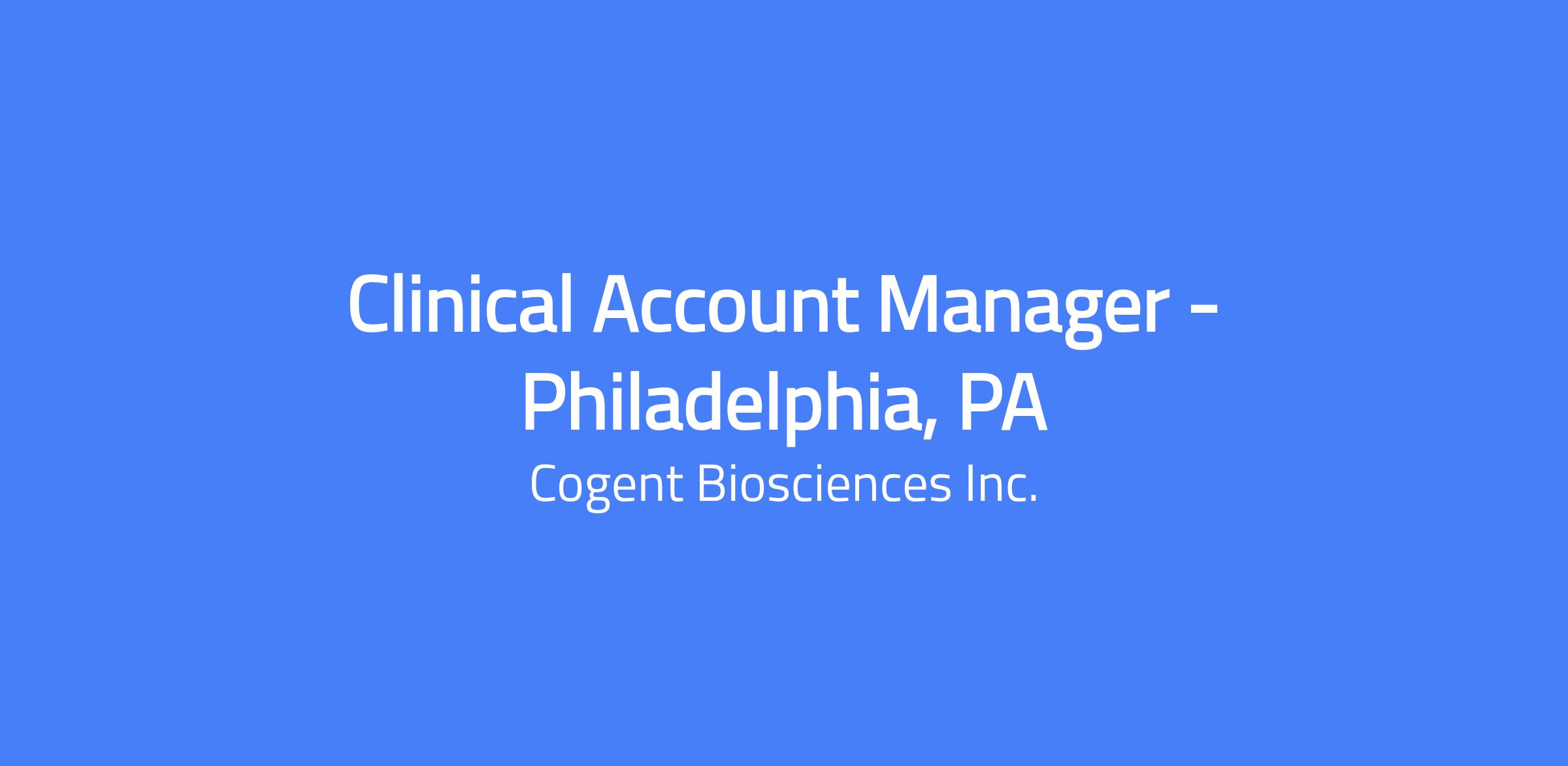 The Role: The Clinical Account Manager (CAM) will serve as a critical member of the Customer Engagement Team and will have an exciting opportunity within Cogent to potentially launch Bezuclastinib in multiple indications across three disease states. The Clinical Account Manager will be responsible for meeting sales targets and utilizing all available resources while tailoring them to meet the customer's needs through a deep understanding of their requirements.  Behaviors that are critical for success in this role are collaboration, communication, planning, relationship building, and the ability to execute tactical initiatives and provide timely feedback. CAMs will report directly to the Regional Business Director.