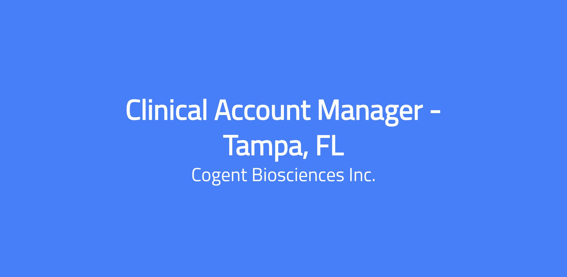 The Role: The Clinical Account Manager (CAM) will serve as a critical member of the Customer Engagement Team and will have an exciting opportunity within Cogent to potentially launch Bezuclastinib in multiple indications across three disease states. The Clinical Account Manager will be responsible for meeting sales targets and utilizing all available resources while tailoring them to meet the customer's needs through a deep understanding of their requirements.  Behaviors that are critical for success in this role are collaboration, communication, planning, relationship building, and the ability to execute tactical initiatives and provide timely feedback. CAMs will report directly to the Regional Business Director.