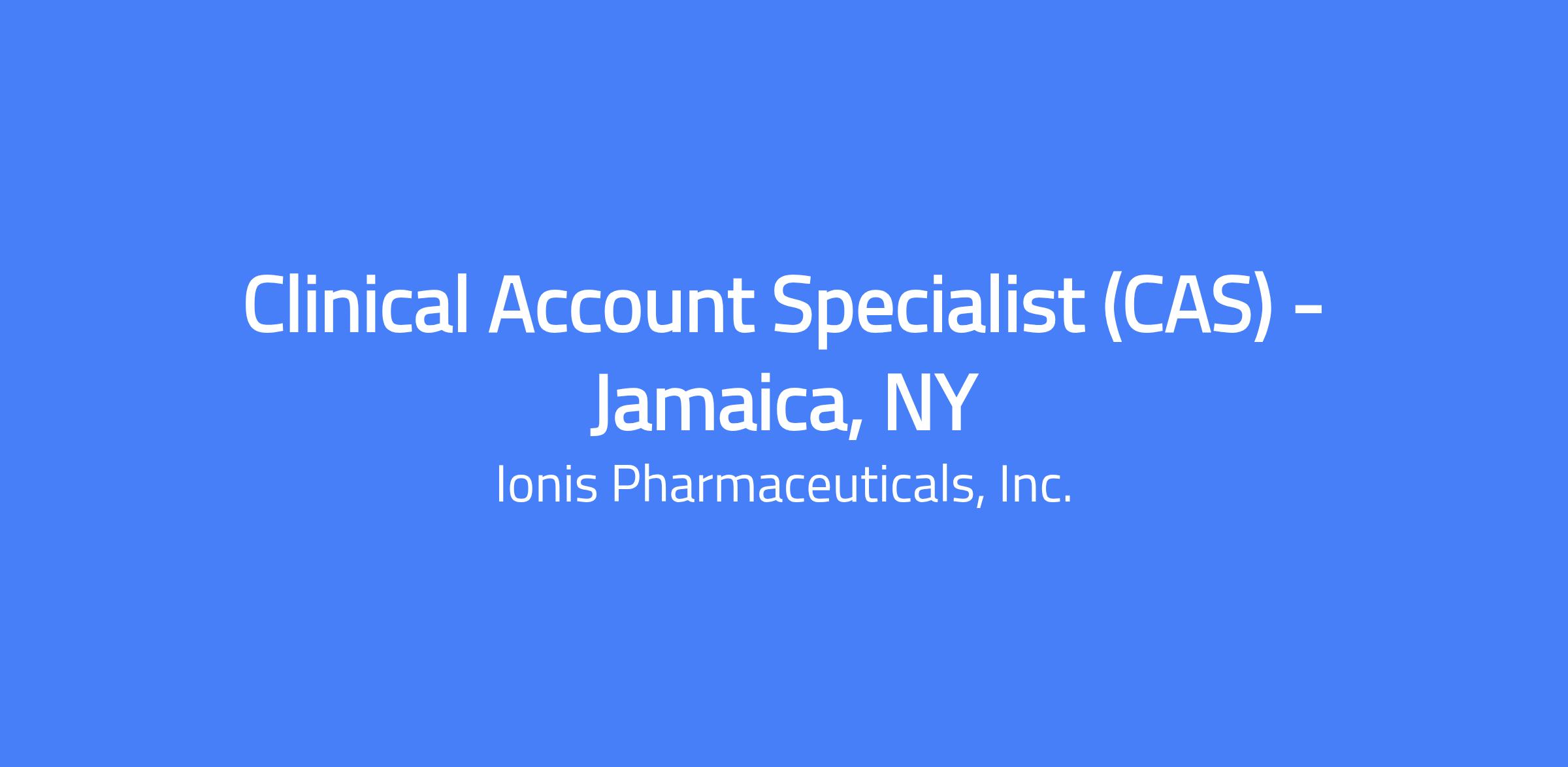 The Clinical Account Specialist (CAS) is a field-based role responsible for the launch of Ionisโs first wholly owned commercial product within their respective territory and will possess a deep understanding of the healthcare market and the Familial Chylomicronemia Syndrome (FCS) community, including the key customers and accounts treating cardiovascular and lipid related diseases. In this role, the CAS will be responsible for driving performance and working with cross-functional partners and external customers to support Ionis goals and come together to help patients in need.