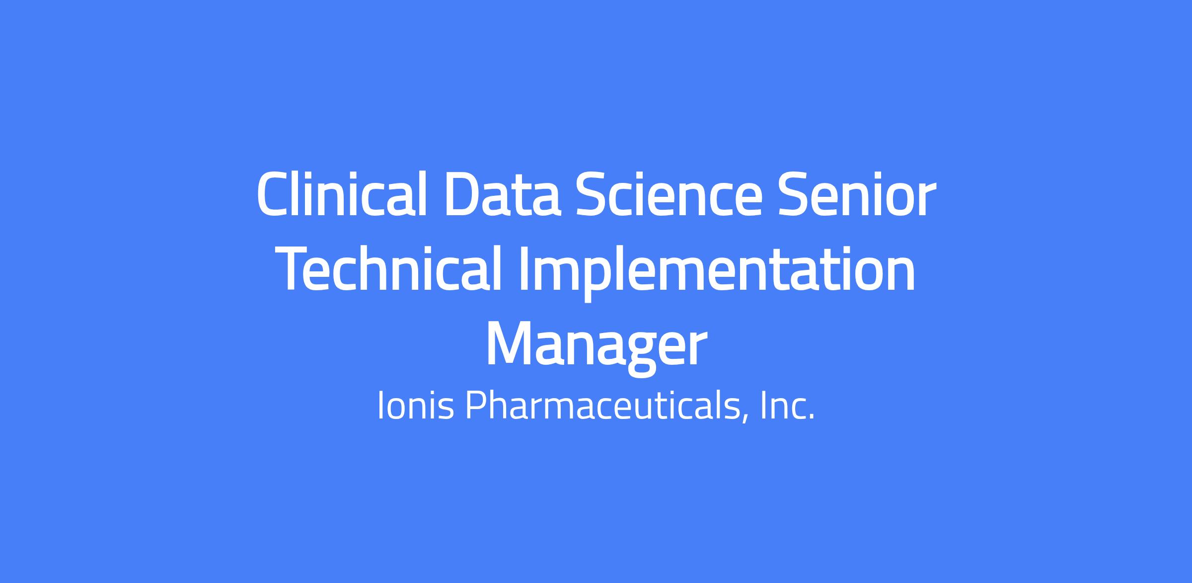 As a Clinical Data Science (CDS) Senior Technical Implementation Manager, you will be responsible for supporting the CDS team's implementation of new technologies and innovations. This includes but is not limited to leveraging the CDW (Clinical Data Warehouse) platform as the primary tool for clinical trial data review, interpreting clinical programming needs from a data management and/or cross-functional perspective and translating those needs into actionable steps, and working with CDS leadership to increase awareness of these tools, innovations, and data review functionality. You will collaborate closely with CDS data managers and clinical programmers as well as members of other functional areas to create clear, detailed, and standardized specifications for displays/visualizations built in both the CDW and outside of CDW. In addition, you will serve as a member of the CDW Implementation Team to develop and deploy strategies, processes, and tools to successfully implement and adopt CDW at Ionis.