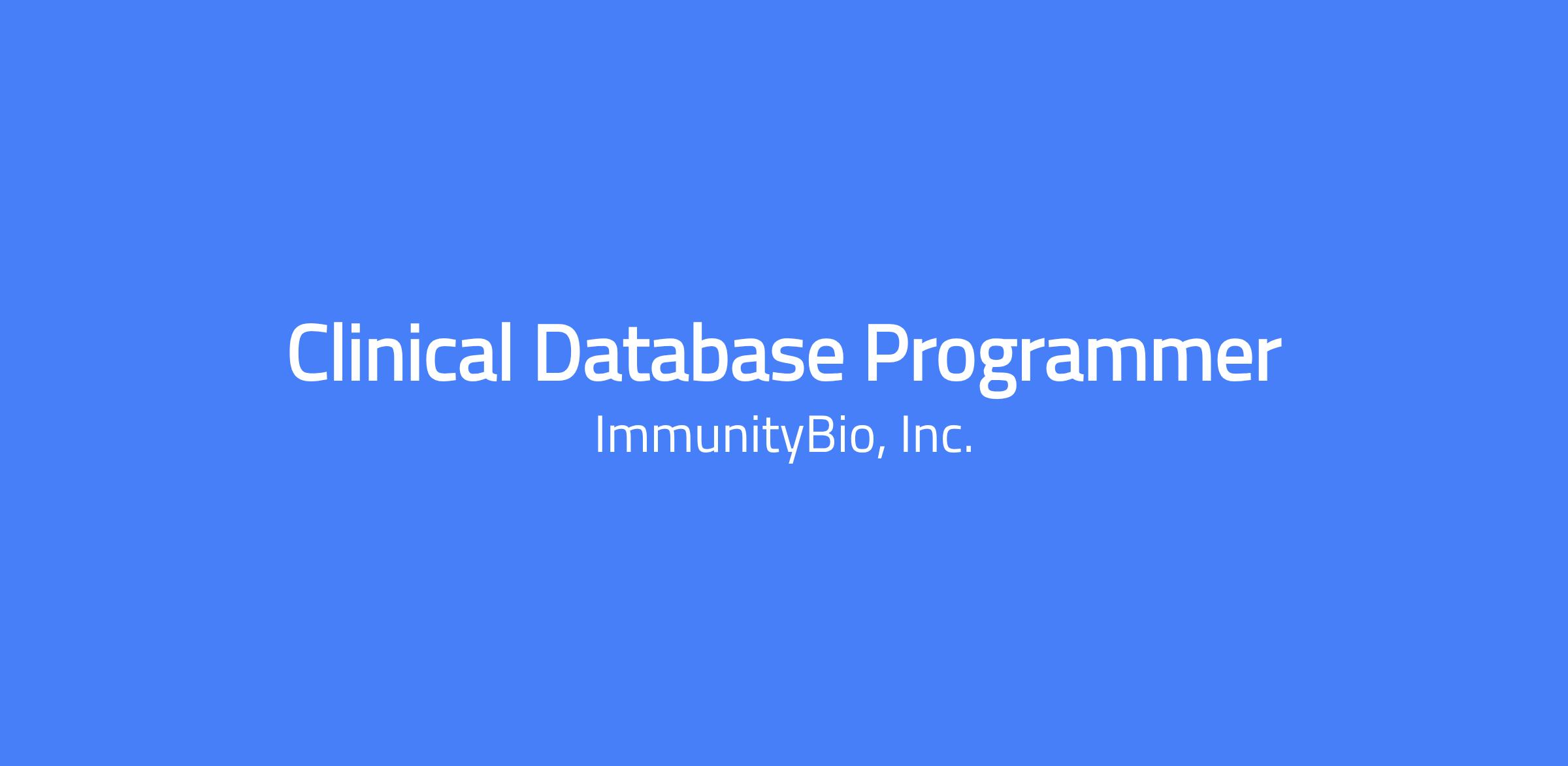 - Required: 3+ years of clinical database programming experience.