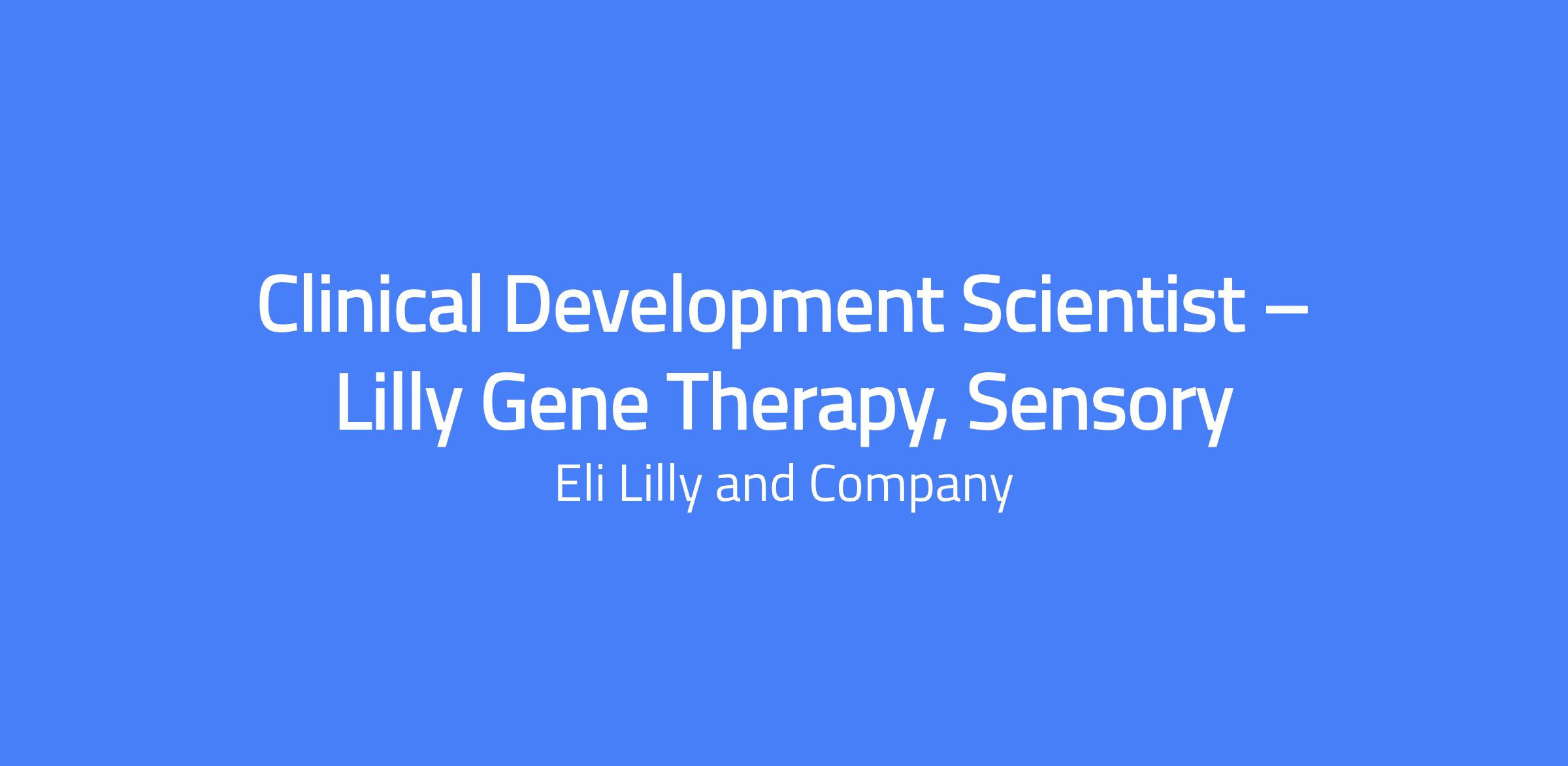 Clinical Development Scientist – Lilly Gene Therapy, Sensory. A clinical trialist responsible for management of clinical supply and implementation of training for global clinical programs, with cross-functional collaboration to support the clinical and scientific execution of Lilly Gene Therapy programs. Location: USA Remote. Travel may be up to 15%, including international travel.