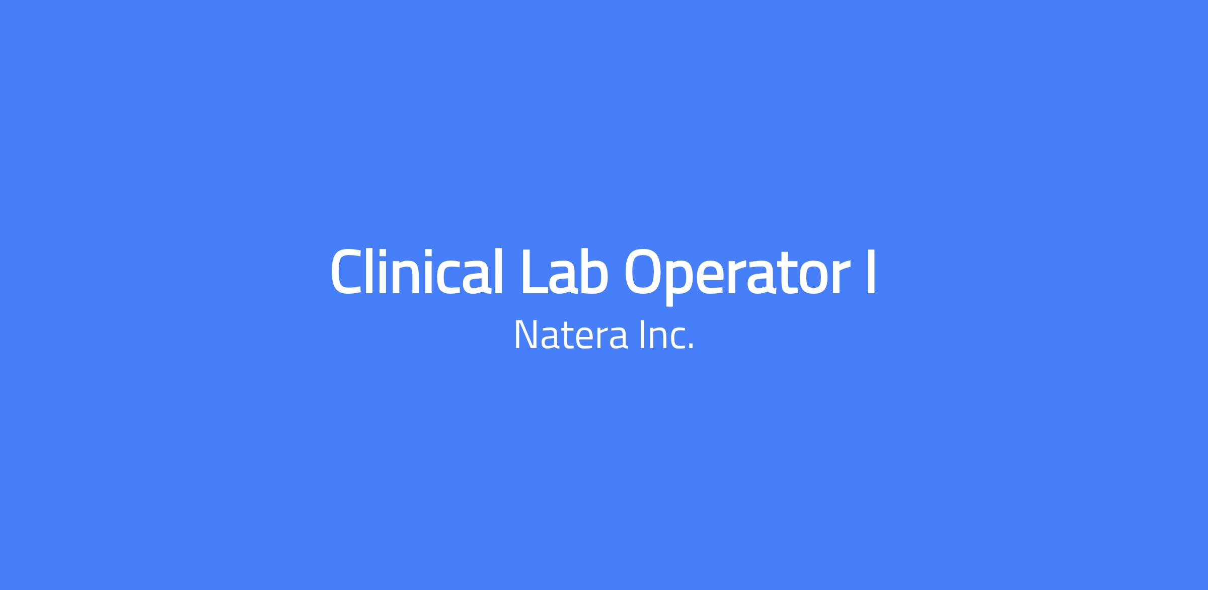 Clinical Lab Operator I