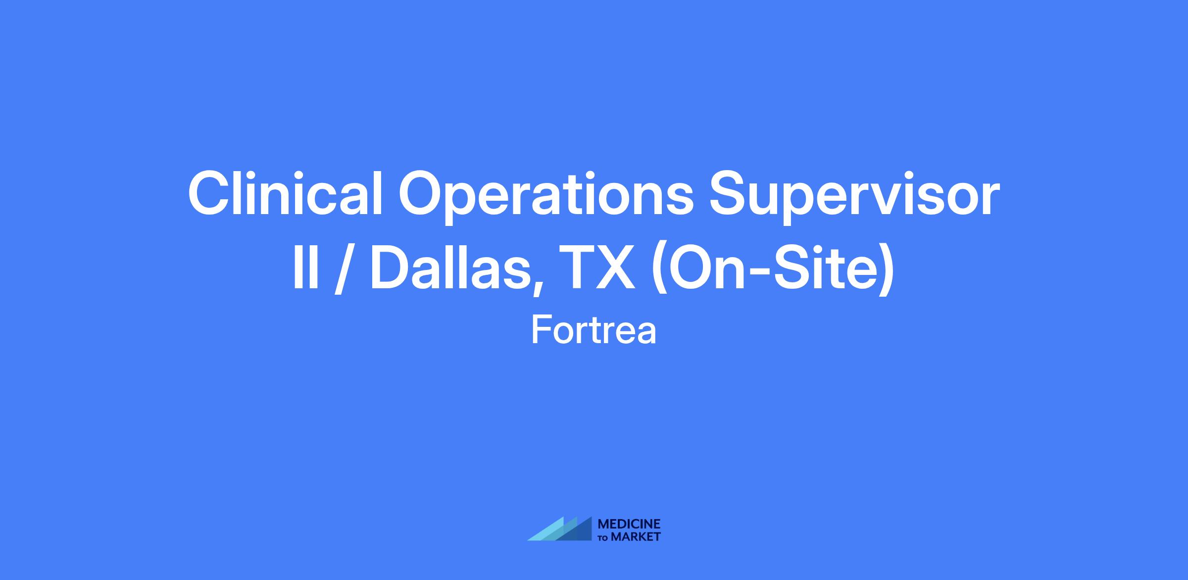 Clinical Operations Supervisor II in Dallas, TX (On-Site). Leads and mentors study staff in a fast-paced, office/clinic-based clinical research environment, coordinating protocols and ensuring high-quality execution in line with ICH/GCP standards. Directly interacts with healthy volunteers and supports the multidisciplinary team in Phase 1 trials.