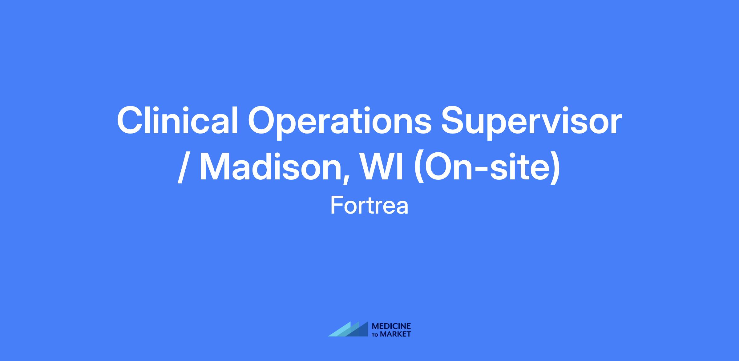 Clinical Operations Supervisor (Madison, WI) β on-site. Directly interact with healthy volunteer participants in a fast-paced, team-oriented environment. Work with diverse therapeutic indications and study types, within an office/clinic-based setting.