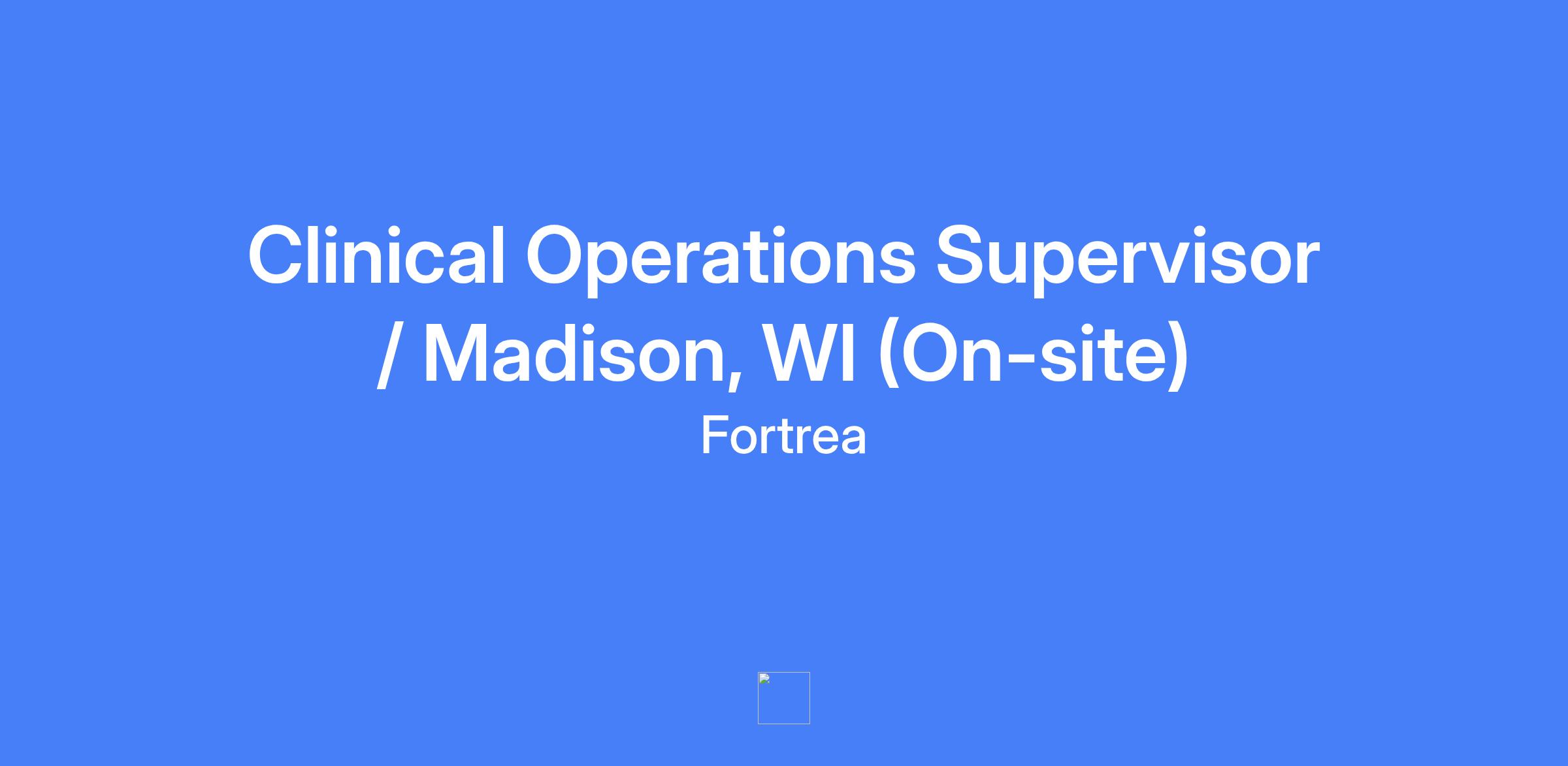 Clinical Operations Supervisor (Madison, WI) β on-site. Directly interact with healthy volunteer participants in a fast-paced, team-oriented environment. Work with diverse therapeutic indications and study types, within an office/clinic-based setting.