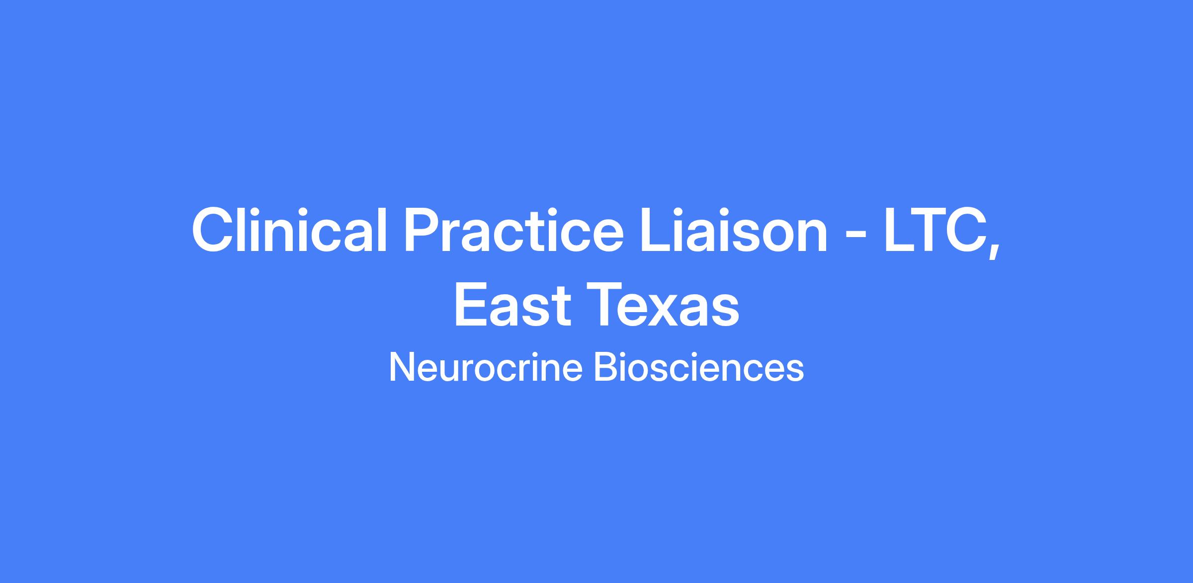 The Clinical Practice Liaison (CPL) builds and maintains clinical/scientific relationships with Advanced Practice Providers (APPs) and other health care professionals, to communicate and advance Neurocrineβs scientific position in alignment with Medical Affairs strategy. This role supports educational outreach including disease state pathophysiology, diagnosis, and evidence-based treatment options, with a focus on Long Term Care (LTC) and skilled nursing facilities. The territory includes all of East Texas and cities of Houston, Austin, Corpus Christi, the Rio Grande Valley area, and the state of Louisiana. Ideal candidates will live in the Houston area (preferred) or Austin.