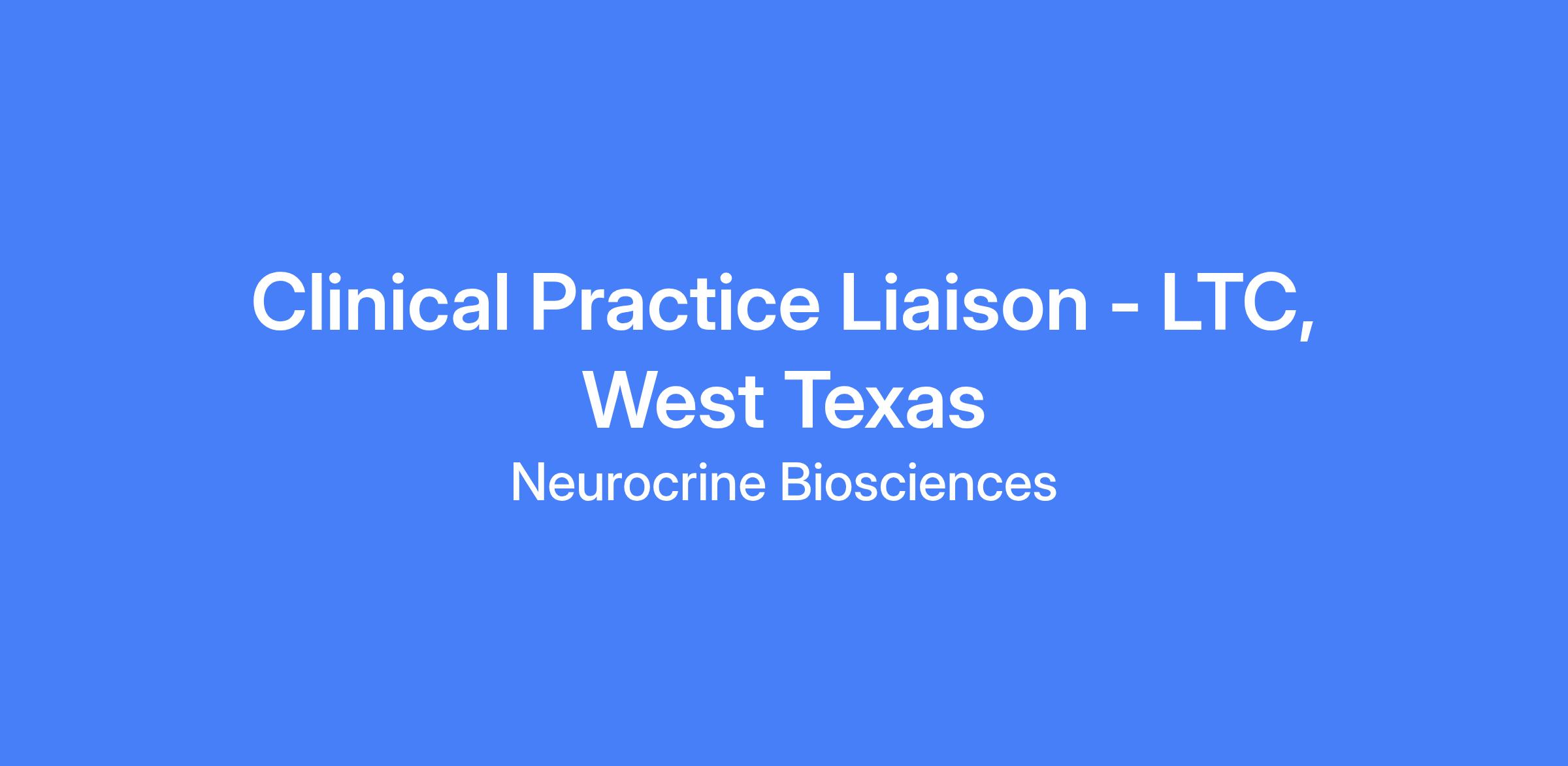 The Clinical Practice Liaison (CPL) builds and maintains clinical/scientific relationships with Advanced Practice Providers (APPs) and other health care professionals, to communicate and advance Neurocrineβs scientific position in alignment with Medical Affairs strategy. This role supports educational outreach including disease state pathophysiology, diagnosis, and evidence-based treatment options, with a focus on Long Term Care (LTC) and skilled nursing facilities. The territory includes all West Texas and the cities of Dallas-Fort Worth, Tyler, San Antonio, Lubbock, El Paso and the state of Oklahoma. The ideal candidates would be in the Dallas (preferred) or San Antonio area.