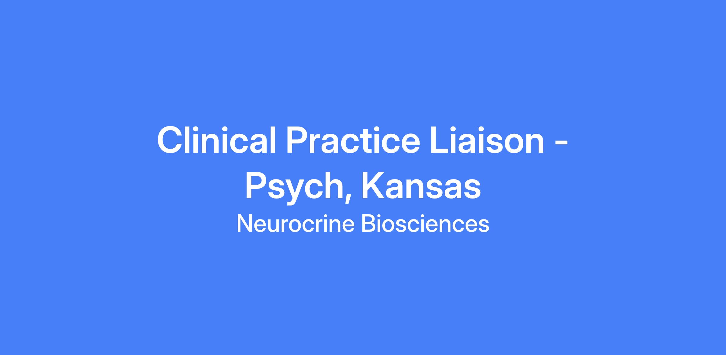 The Clinical Practice Liaison (CPL) builds and maintains clinical/scientific relationships with Advanced Practice Providers (APPs) and other health care professionals, to communicate and advance Neurocrineβs scientific position in alignment with Medical Affairs strategy. This role supports educational outreach including disease state pathophysiology, diagnosis, and evidence-based treatment options focusing on, but not limited to, Community Mental Health Centers (CMHC). The territory includes all of ND, SD, NE and KS. The ideal candidate will be a skilled NP, PA or DNP with psych-neuro experience and live in Kansas City or Omaha, NE and live near a major airport hub.