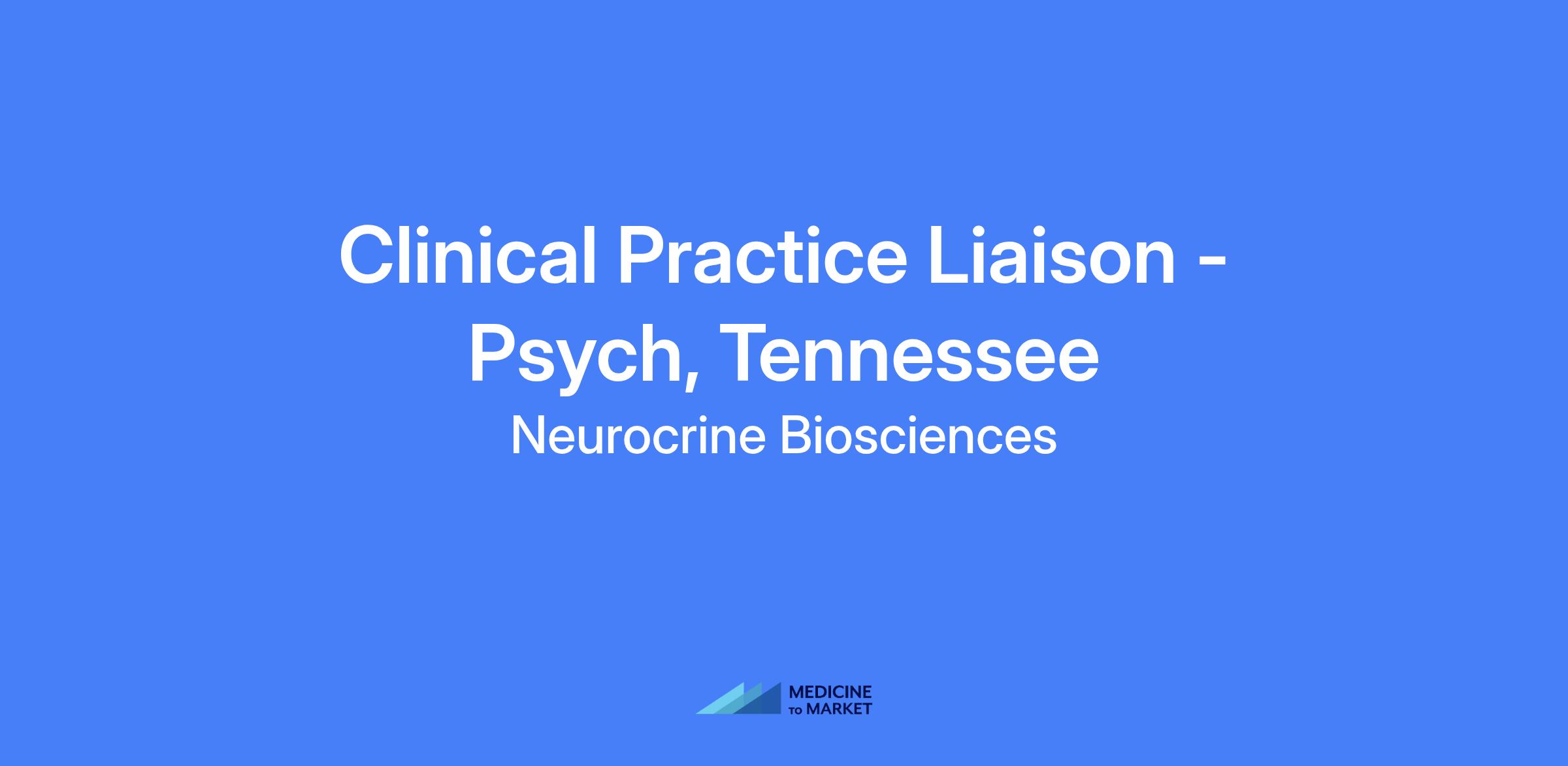 The Clinical Practice Liaison (CPL) builds and maintains clinical/scientific relationships with Advanced Practice Providers (APPs) and other health care professionals, to communicate and advance NeurocrineβΓΓ΄s scientific position in alignment with Medical Affairs strategy. This role supports educational outreach including disease state pathophysiology, diagnosis, and evidence-based treatment options focusing on, but not limited to, Community Mental Health Centers (CMHC), Long Term Care (LTC) and skilled nursing facilities. Location: Tennessee.