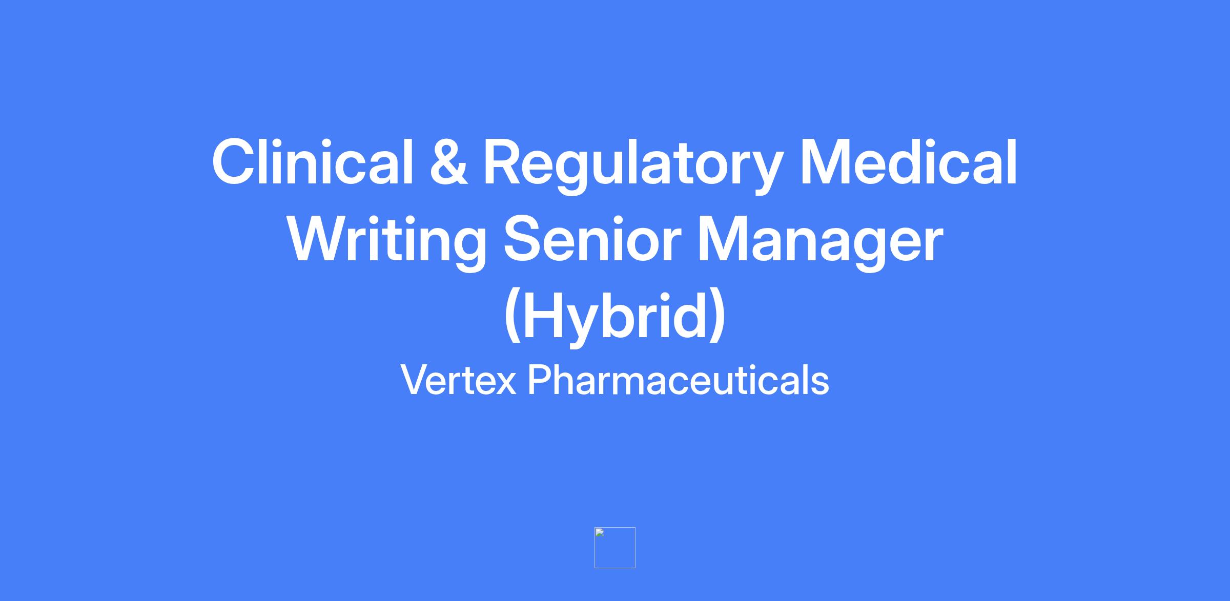 Clinical & Regulatory Medical Writing Senior Manager (Hybrid) β The Medical Writing Science Senior Manager is responsible for independently authoring complex clinical study documents and sections of regulatory submissions to support all phases of clinical drug development. This role may represent Medical Writing Science as a cross-functional team member for study-level and program-level activities.