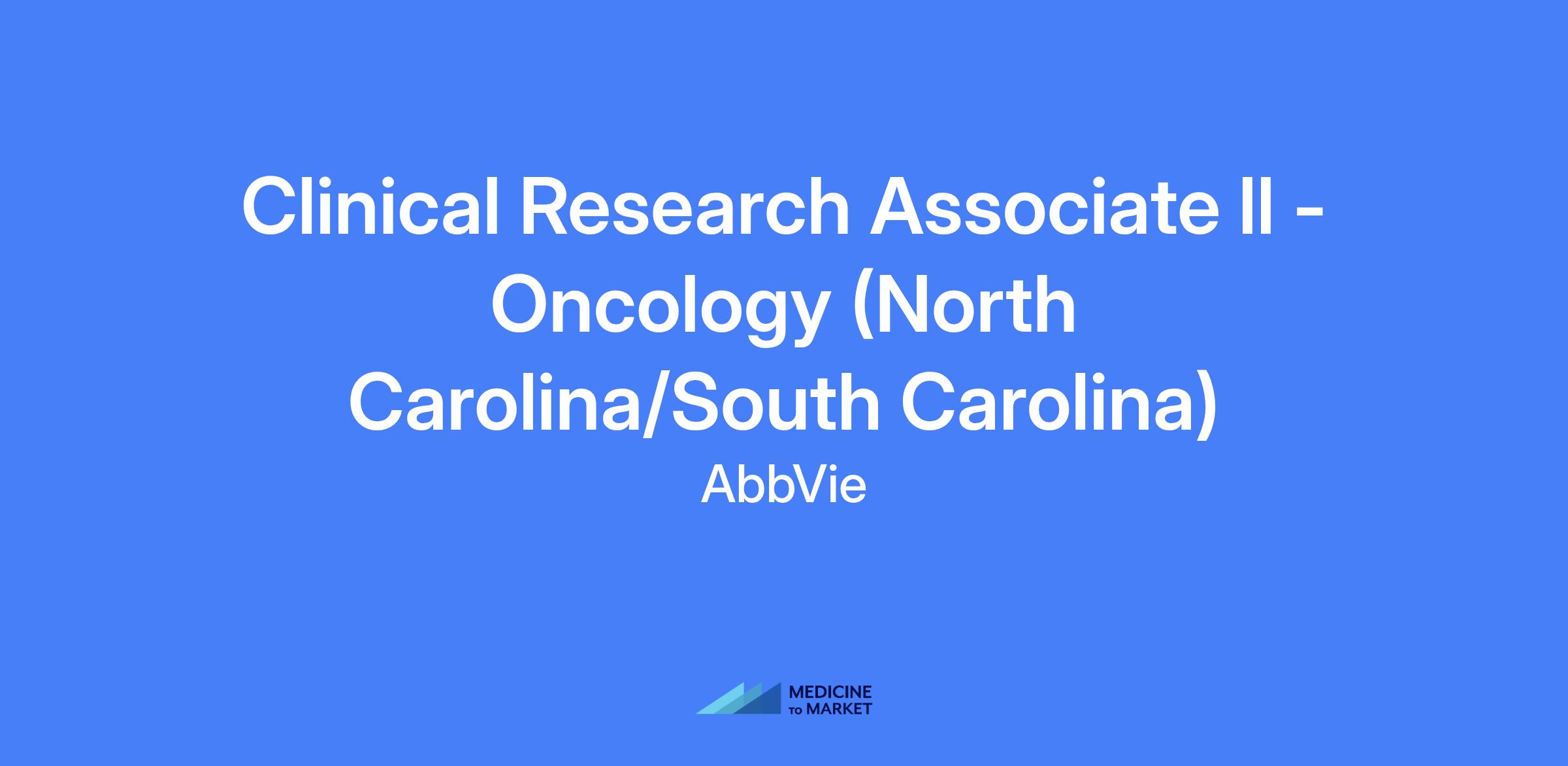 Clinical Research Associate II - Oncology (North Carolina/South Carolina) with AbbVie. The CRA II advancesAbbVie’s pipeline by striving for excellence in clinical research, ensuring proper trial conduct, and continually improving data integrity, compliance, and study performance while enhancing the customer experience. Partners with investigators and site staff to build meaningful engagements and position AbbVie as the sponsor of choice in clinical trials.