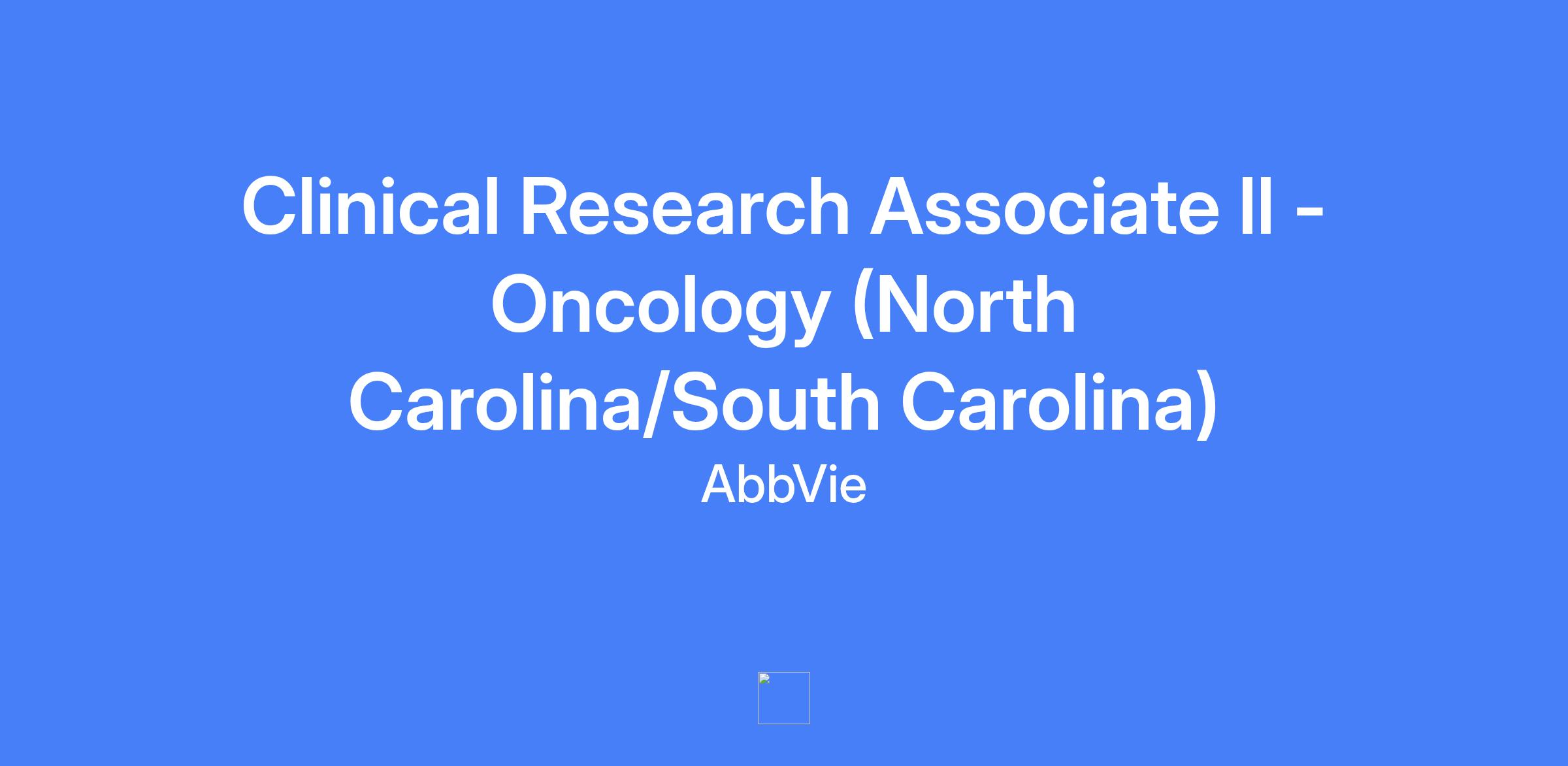 Clinical Research Associate II - Oncology (North Carolina/South Carolina) with AbbVie. The CRA II advancesAbbVie’s pipeline by striving for excellence in clinical research, ensuring proper trial conduct, and continually improving data integrity, compliance, and study performance while enhancing the customer experience. Partners with investigators and site staff to build meaningful engagements and position AbbVie as the sponsor of choice in clinical trials.