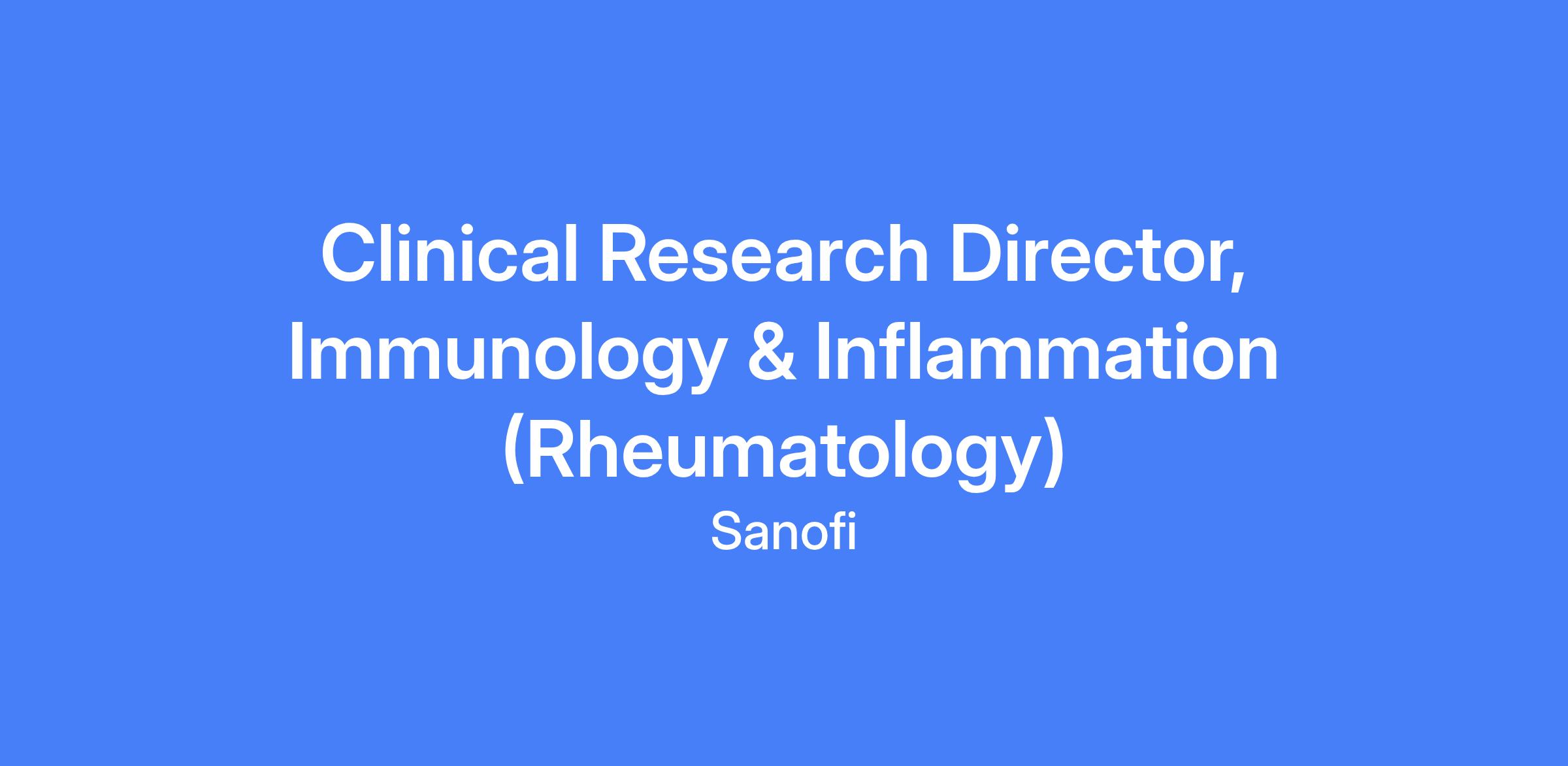 The Clinical Research Director (CRD), Immunology & Inflammation (I&I) Therapeutic Area is responsible for the creation of the clinical development plan in alignment with the project strategy, its endorsement by governance and its execution in close collaboration with clinical operations. The CRD is expected to advance scientific and clinical knowledge for immunology in rheumatologic diseases, incorporate new methodologies, and pro-actively progress study execution. The role will focus on developing innovative therapies for autoimmune and inflammatory diseases, with a particular emphasis on rheumatology. Location: Cambridge, MA / Morristown, NJ.