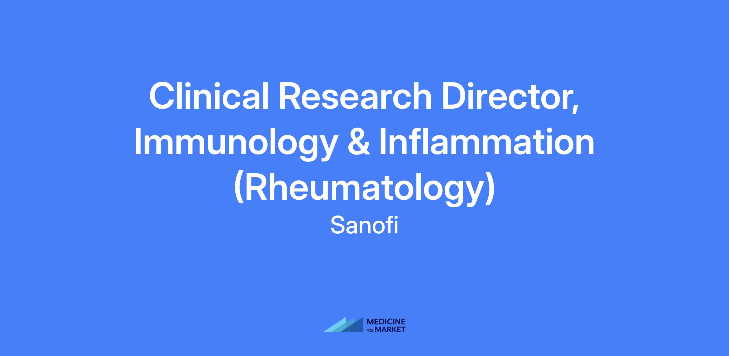 Clinical Research Director, Immunology & Inflammation (Rheumatology) responsible for creating the clinical development plan, aligning with project strategy, and executing with clinical operations. Focus on advancing immunology in rheumatologic diseases and developing innovative therapies for autoimmune and inflammatory diseases.