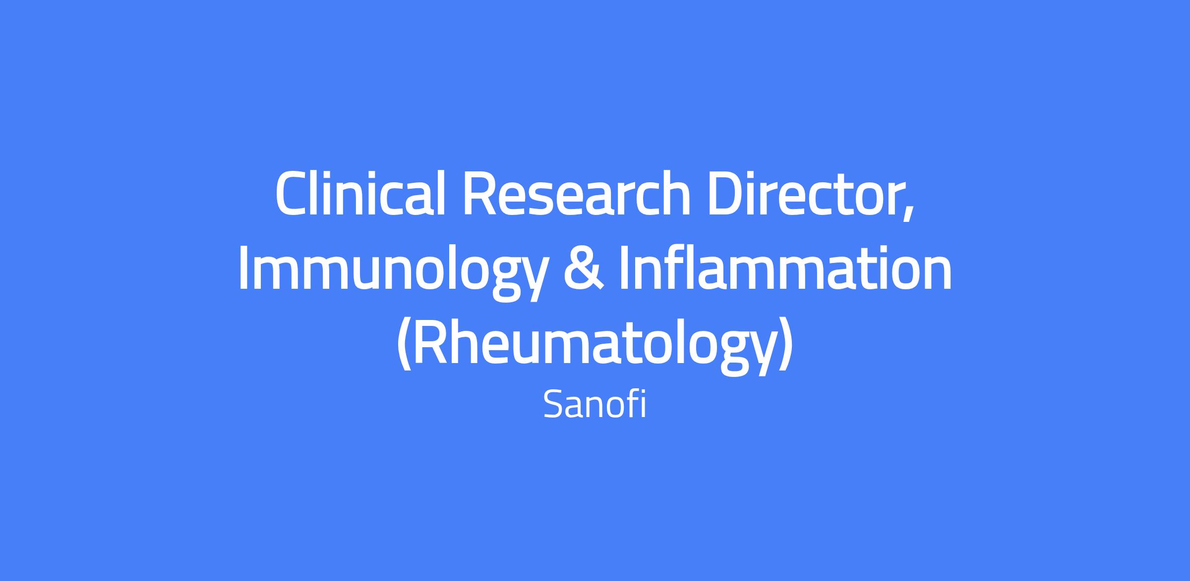 The Clinical Research Director (CRD), Immunology & Inflammation (I&I) Therapeutic Area is responsible for the creation of the clinical development plan in alignment with the project strategy, its endorsement by governance and its execution in close collaboration with clinical operations. The CRD is expected to advance scientific and clinical knowledge for immunology in rheumatologic diseases, incorporate new methodologies, and pro-actively progress study execution. The role will focus on developing innovative therapies for autoimmune and inflammatory diseases, with a particular emphasis on rheumatology. Location: Cambridge, MA / Morristown, NJ.