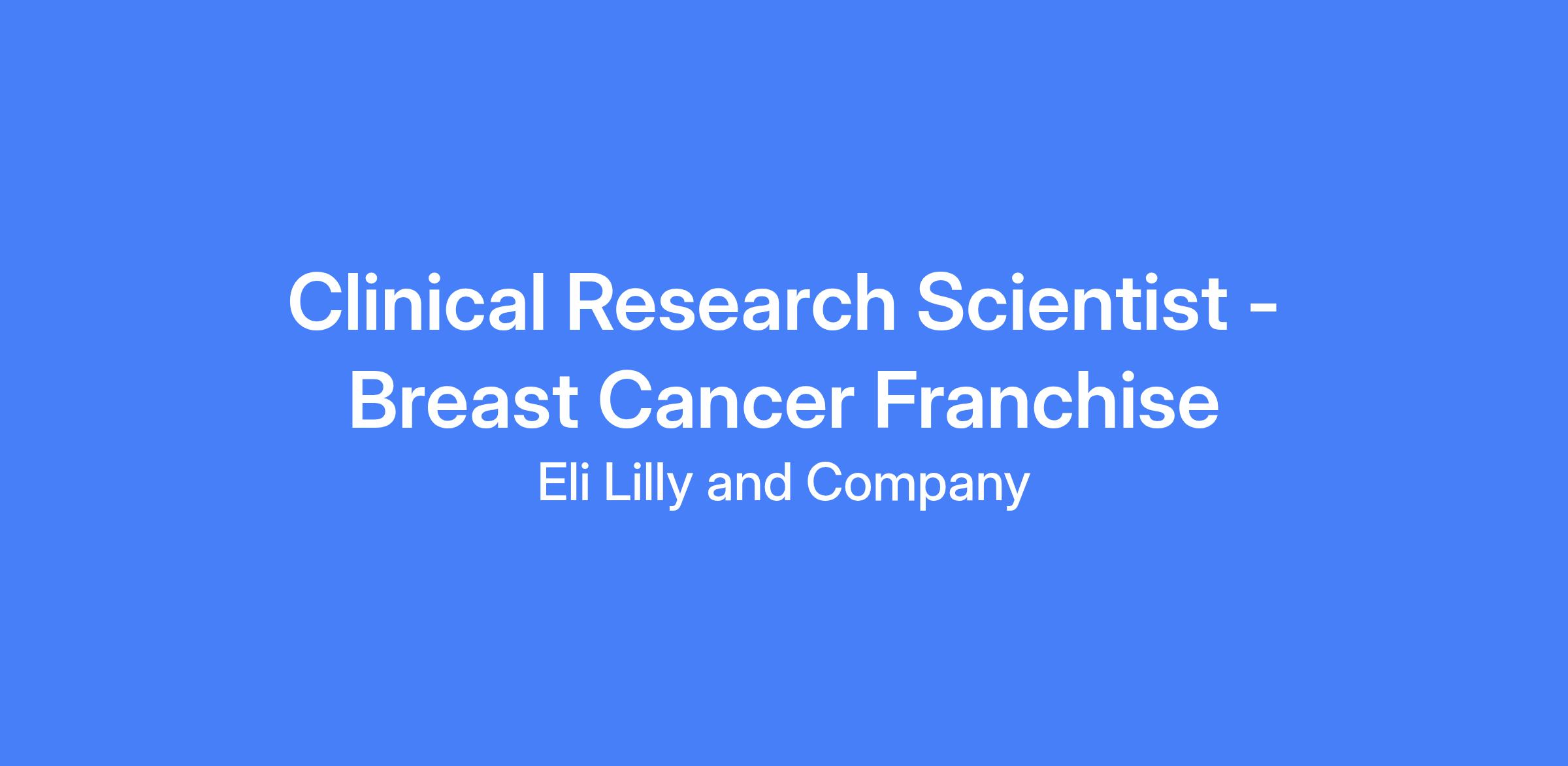 The Development Clinical Research Scientist (CRS) in the Breast Cancer Franchise focuses on lateโphase assets, driving the design, execution, and analysis of clinical trials for innovative breast cancer therapies. The CRS ensures medical activities align with the medical vision, regulations, GCPs, and Lilly policies, and collaborates across medical affairs, clinical operations, regulatory, statistics, and data science to advance the oncology pipeline and improve patient outcomes. The role includes supervisory responsibilities and requires leadership in clinical development, mentoring capabilities, and strong written communication for external data disclosures and regulatory documentation.