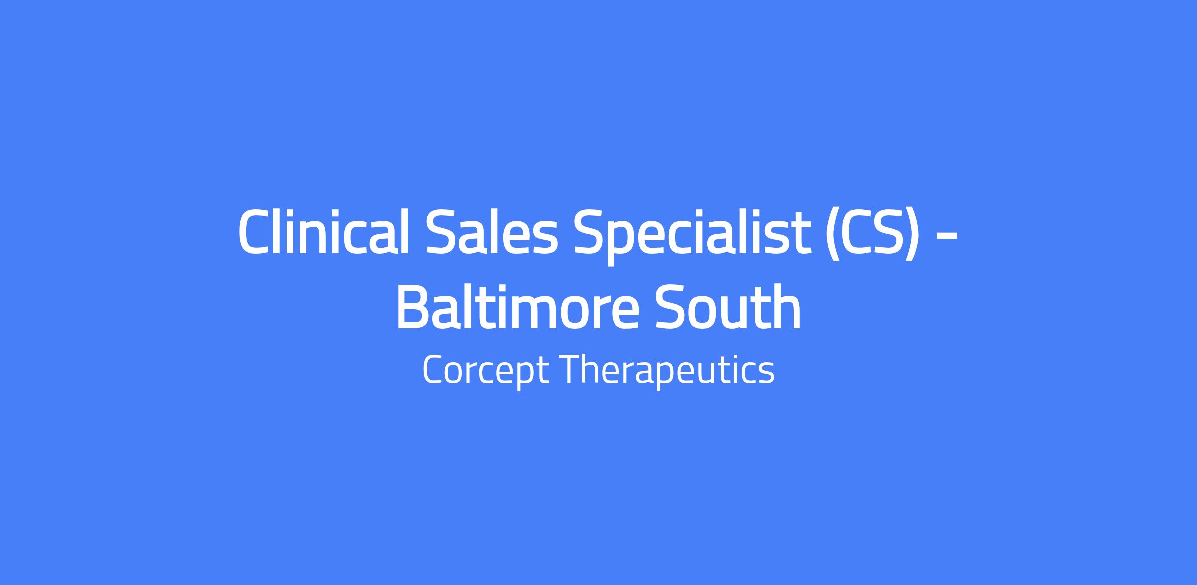 Clinical Sales Specialist (CS) – Baltimore South. Accountable for implementing the sales strategies for approved Corcept products within an assigned territory, in compliance with applicable standards and regulatory requirements for key targeted health care providers and hospital systems.