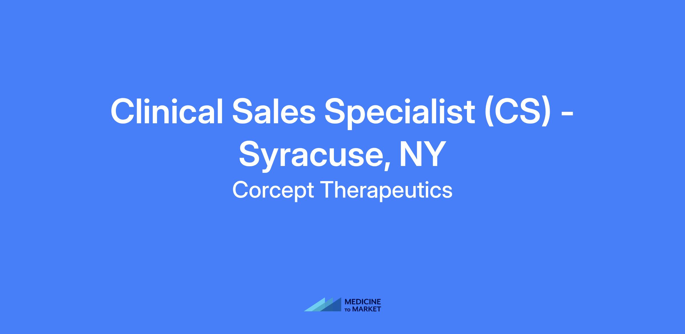 Clinical Sales Specialist (CS) - Syracuse, NY responsible for implementing sales strategies for approved Corcept products within an assigned territory, in compliance with all legal requirements and company standards.