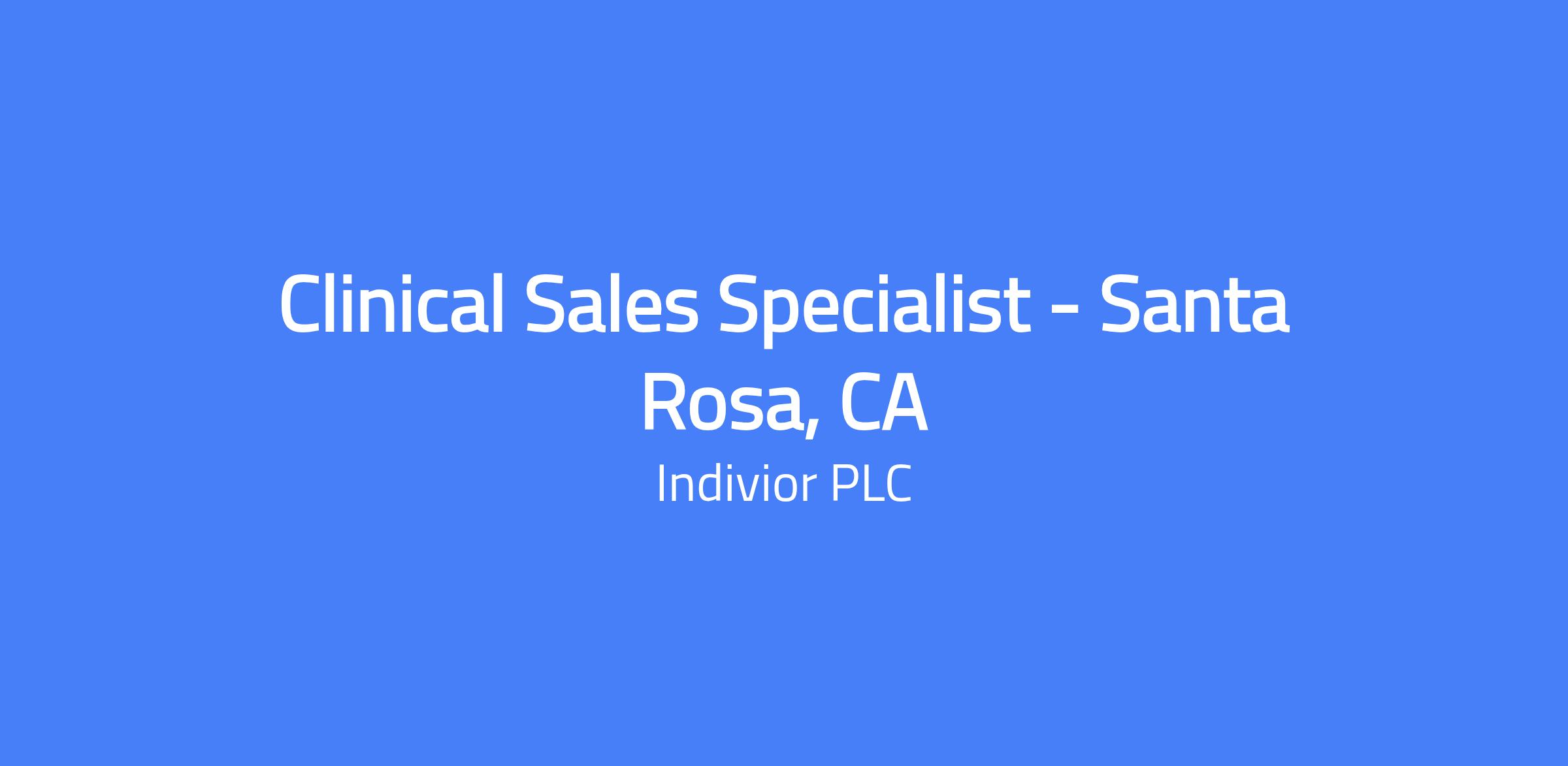 TITLE: Clinical Sales Specialist - Santa Rosa, CA Indivior is a global pharmaceutical company working to help change patients' lives by developing medicines to treat opioid use disorder (OUD). Our vision is that all patients around the world will have access to evidence-based treatment for OUD and we are dedicated to transforming OUD from a global human crisis to a recognized and treated chronic disease. Building on its global portfolio of OUD treatments, Indivior has a pipeline of product candidates designed to expand on its heritage in thisâ¯category. Headquartered in the United States in Richmond, VA,â¯Indivior employs over 700 individuals globally. Visit www.indivior.comâ¯to learn more. Connect with Indivior on LinkedIn by visiting www.linkedin.com/company/Indivior. POSITION SUMMARY: The Clinical Sales Specialist is responsible for calling on practicing physicians, hospitals, clinics and other health-related organizations within an assigned territory, Santa Rosa, CA. The Clinical Sales Specialist must provide the healthcare professional with the most current information pertaining to Indivior products and their approved indications in a manner which will ensure the appropriate use of these products and achieve the business potential of the territory. Accomplishments of these goals must comply with the terms and conditions outlined in the Company Policy and Procedure Manual. ESSENTIAL FUNCTIONS: The responsibilities of this job include, but are not limited to, the following: Invest the time and the effort to achieve the established goals for the territory such as sales, market share, doctor calls, appropriate program planning, etc. Monitoring and analyzing results on territory, maintaining an up-to-date business plan that evaluates sales effectiveness. Ensure all required documentation, reports etc. are timely and accurate. Demonstrate a strong clinical understanding of all aspects of Indivior products and related disease states. Ensure clear, concise and accurate communication of product information. Plan and organize daily sales call activities to optimize the use of time and maximize the achievement of sales objectives. Demonstrate persistence to accomplish objectives despite disappointments and/or rejection of original efforts. Create and maintain a positive impression with customers. Project a professional business image as demonstrated by neat physical appearance, and appropriate manner of speech. Maintain timely communication with Area Sales Manager and other members of the sales leadership team. Field work with Area Sales Manager and other Indivior personnel. Maintain all company-provided equipment in good operating condition. Overnight attendance at sales training meetings. Recognize changes in the work environment, to develop and implement alternate plans to achieve objectives. Represent Indivior at national and/or local conferences if applicable. Perform special projects and assignments as directed by the Sales Leadership team. QUALIFICATIONS: Education: BS/BA degree required Experience: 2+ years of pharmaceutical/biotech industry experience with a proven track record of success Injectable experience preferred Experience with selling complex specialty pharmacy/buy and bill products are preferred Previous experience selling a drug device or technology that required a change in physician protocol is preferred Maintain valid driverâs license Strong customer focus demonstrated teamwork/ collaboration Computer proficient COMPETENCIES/CONDUCT: In addition to the minimum qualifications, the employee will demonstrate: Passion for improving patient outcomes Strong level of emotional intelligence Grit, Growth mindset Ability to gain access to key prescribers and decision makers Selling/ persuasive/ presentation Skills Focused listening skills Displays a high-level of initiative, effort and commitment to ensure the completion of assignments and projects in a timely manner Reads situations quickly. Anticipates and adjusts for problems and roadblocks Results oriented with a strong work ethic Seeks feedback and coaching for continued development Highly collaborative across matrix partners High degree of integrity and the ability to maintain compliance in all daily engagements. Maintain a positive working relationship with key customers and external contacts BENEFITS: Indivior is committed to providing a culture driven by guiding principles and top-tier benefits that match the importance of the work we do. The Indivior experience includes: Competitive vacation, floating holidays and sick leave, plus company closure from December 24th- January 1st 401(k) and Profit Sharing Plan- Company match of 75% on your first 6% of contributions and profit-sharing contribution equal to 4% of your eligible pay Annual Equity for All program and U.S. Employee Stock Purchase Plan- 15% Discount Fleet vehicle program Comprehensive Medical, Dental, Vision, Life and Disability coverage Health, Dependent Care and Limited Purpose Flex Spending and HSA options Adoption assistance Tuition reimbursement Concierge/personal assistance services Voluntary benefits including Legal, Pet Insurance and Critical Illness coverage Gym, fitness facility and cell phone discounts GUIDING PRINCIPLES: Indiviorâs guiding principles are the foundation for each employeeâs success and growth. Each employee is expected to demonstrate understanding and adherence to our guiding principles in their everyday performance. COMPLIANCE OBLIGATIONS: Indivior is committed to maintaining a workplace where employees are committed to compliance and feel comfortable raising concerns about potential violations of policies or unethical behavior. As part of your responsibilities, you are expected to: Employee Obligations: Have unquestionable ethics and integrity with the willingness to stand firm on these principles even under significant pressure Risk IQ: Know what policies apply to your role and function and adhere to them. Speak Up: If you 
