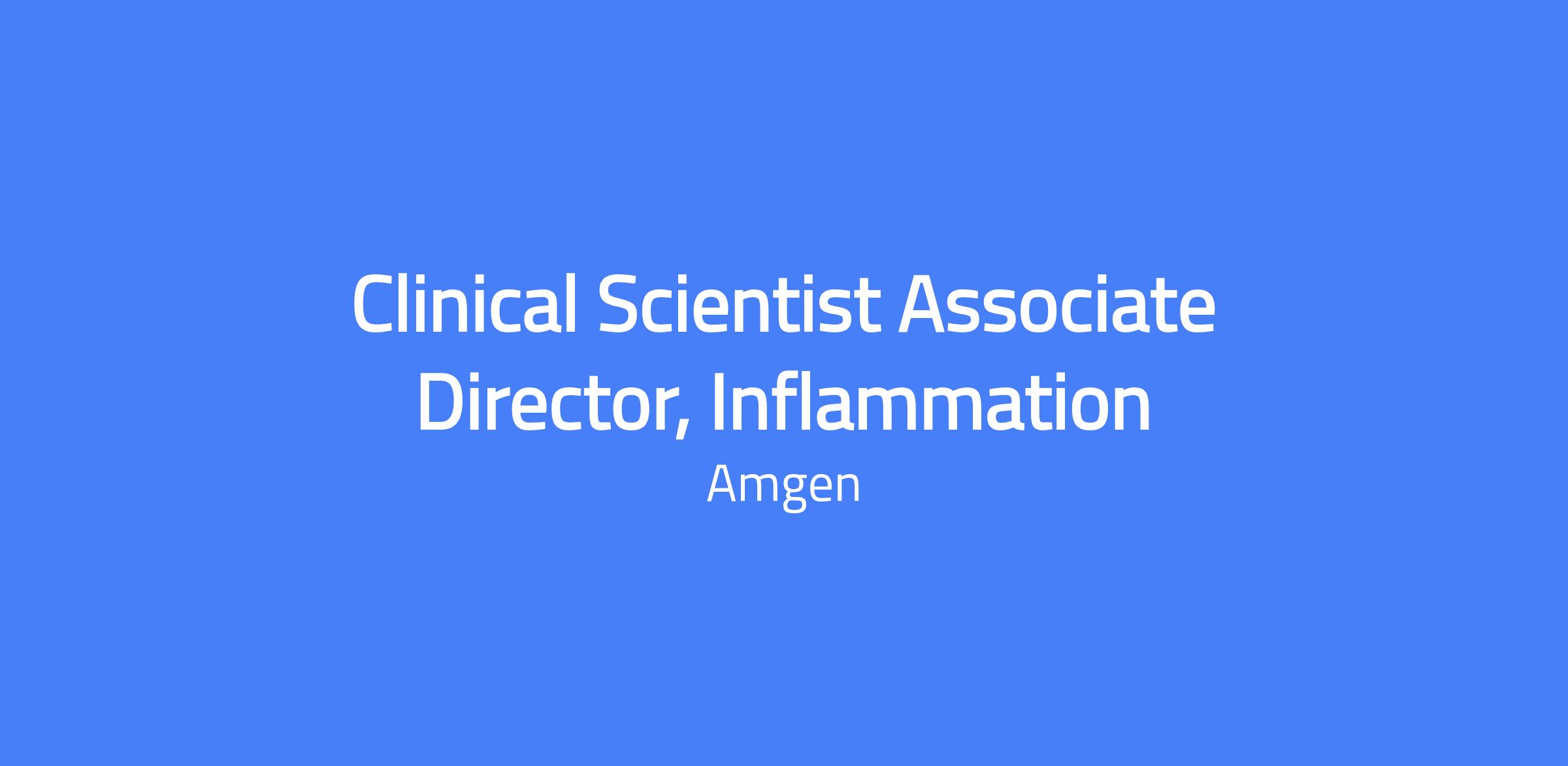 Clinical Scientist Associate Director, Inflammation. In this inflammation-focused late-phase clinical development role, you will support protocol development, study start-up, data review and monitoring, and analysis activities. Working with the study team and clinical leadership, you will focus on study-level implementation and cross-functional coordination to ensure high-quality, decision-ready clinical data.