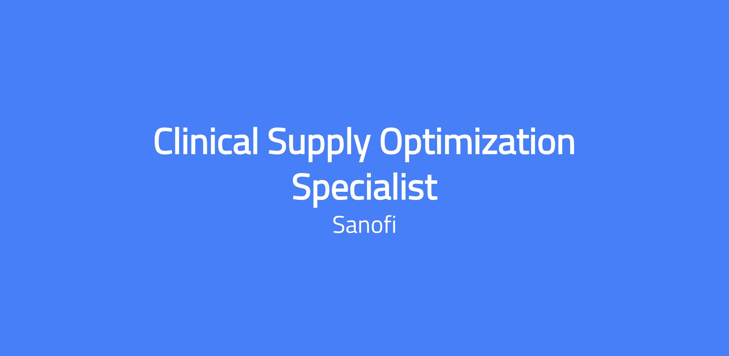 As a Clinical Supply Optimization Specialist (CSOS) within the CSC-PM team, you will be accountable to identify an optimized study design to support the best supply strategy and propose disruptive/innovative approaches to improve study/project costs and lead times. You will report to the Clinical Supply Optimization Specialist Leader. This role supports the Clinical Supply Chain Operations (CSCO) to ensure supplies for Sanofi Pharma and Vaccines clinical trials are set up, planned, ordered, packed and delivered in more than 80 countries to prevent trial disruption.