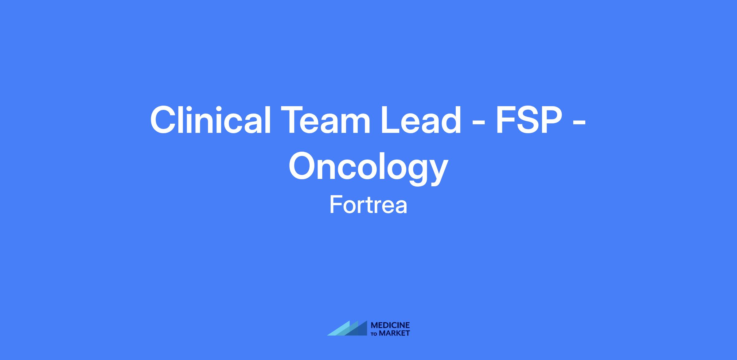 Clinical Team Lead - FSP - Oncology