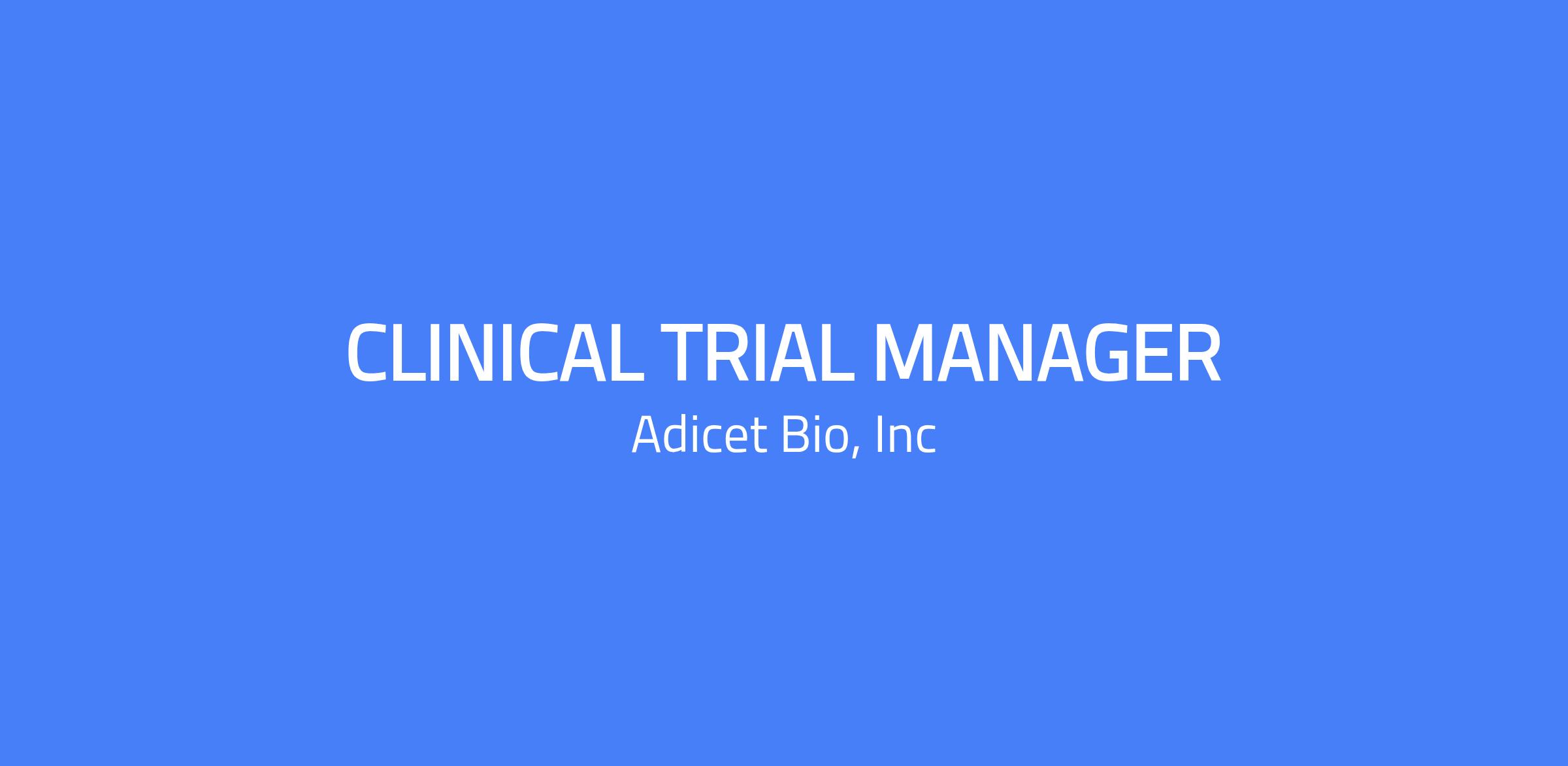 The Clinical Trial Manager will support all aspects of Adicet Bio’s clinical trials, including site activation, patient recruitment, study monitoring, site and CRO/vendor management. The role requires experience in managing oncology clinical trials, a strong knowledge of clinical operations, ICH/GCP, and FDA regulatory requirements, and the ability to work cross-functionally with study sites, CROs, and other vendors.