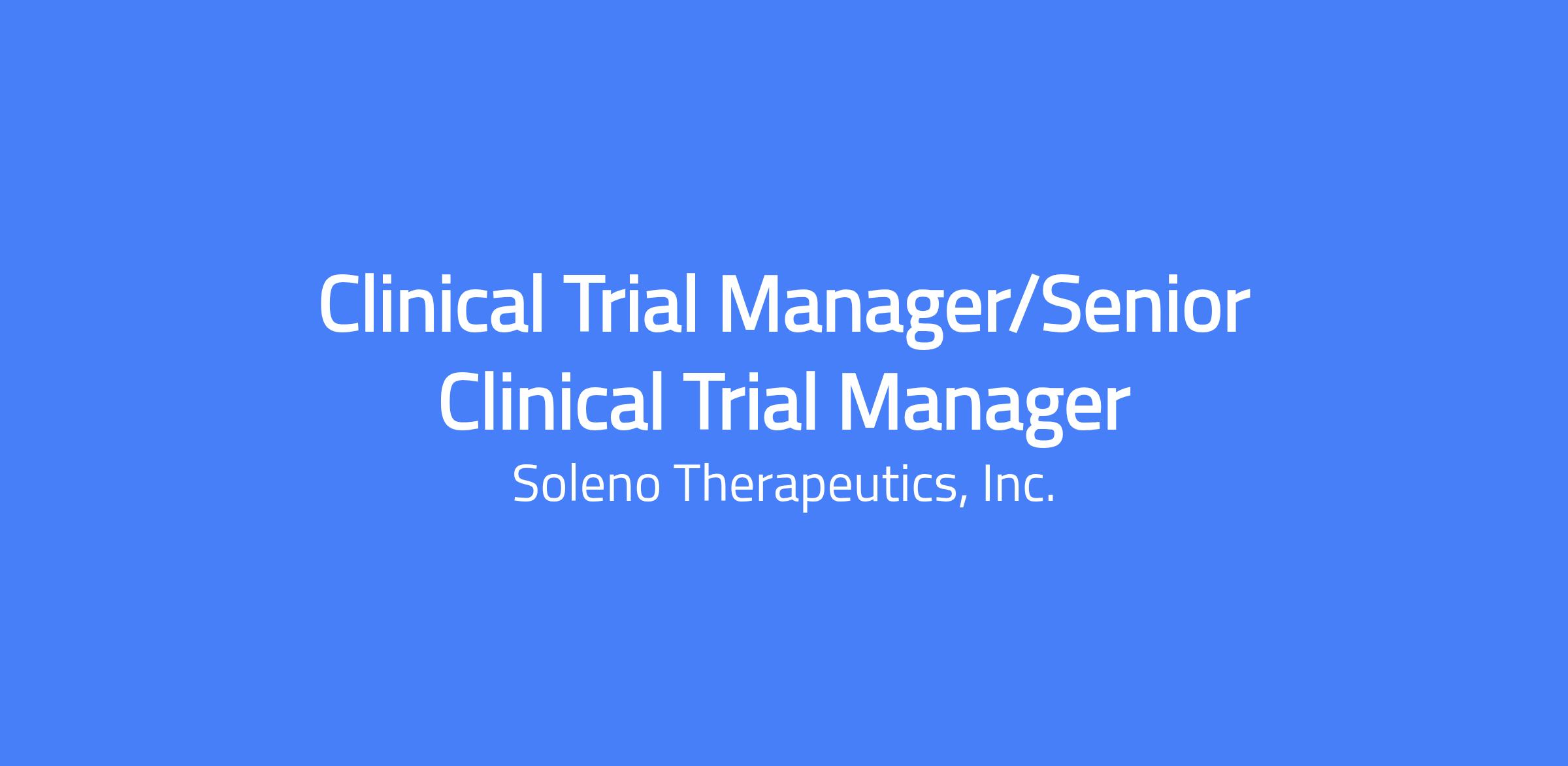 The Clinical Trial Manager (CTM)/Senior CTM reports to the Vice President, Clinical Operations and is responsible for the end-to-end operational leadership and execution of Soleno’s clinical programs across all phases of development, including post-marketing, observational, and global studies. This role provides cross-functional leadership and vendor oversight to ensure trials are delivered on time, within budget, and in compliance with protocols, SOPs, ICH GCP, and applicable global regulatory requirements. The CTM partners closely with internal stakeholders and external vendors to proactively manage risk, ensure inspection readiness, and drive operational excellence in support of Soleno’s approved products and lifecycle development programs. This role requires adaptability and willingness to travel domestically and internationally as needed to support trial execution.