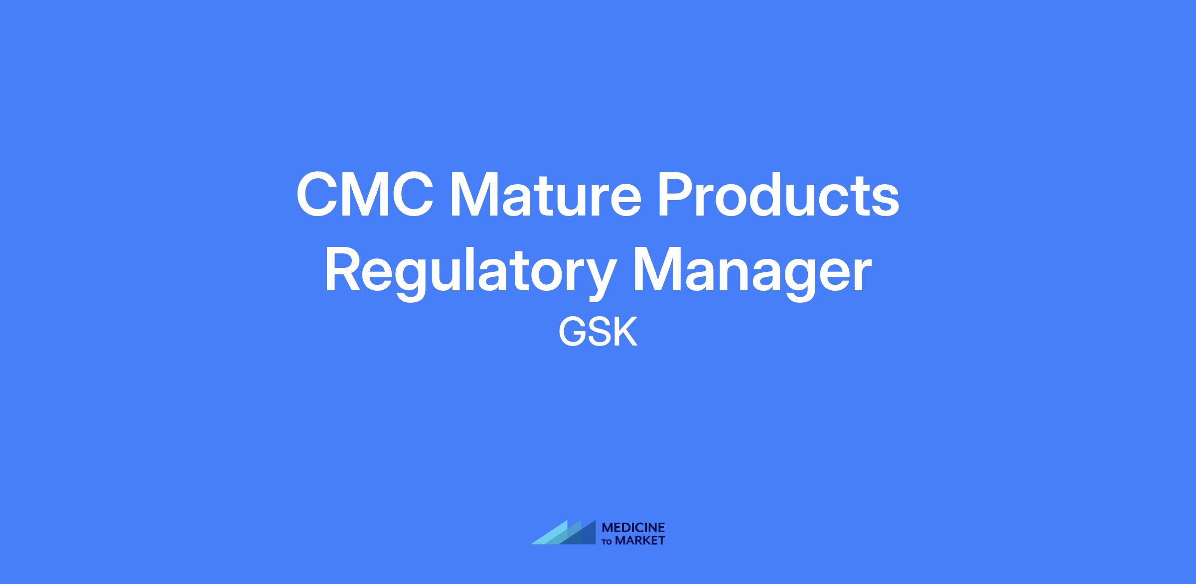 CMC Mature Products Regulatory Manager responsible for the CMC regulatory activities in the commercial lifecycle management of GSK products.