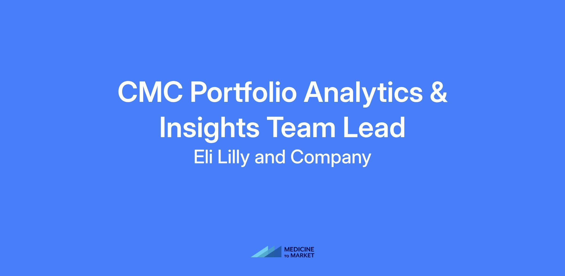 CMC Portfolio Analytics & Insights Team Lead. Lead transformation of CMC portfolio data into a strategic asset, build and lead a high-impact team responsible for analytics, forecasting, data infrastructure, and insight generation to enable data-driven decision-making across the CMC organization.