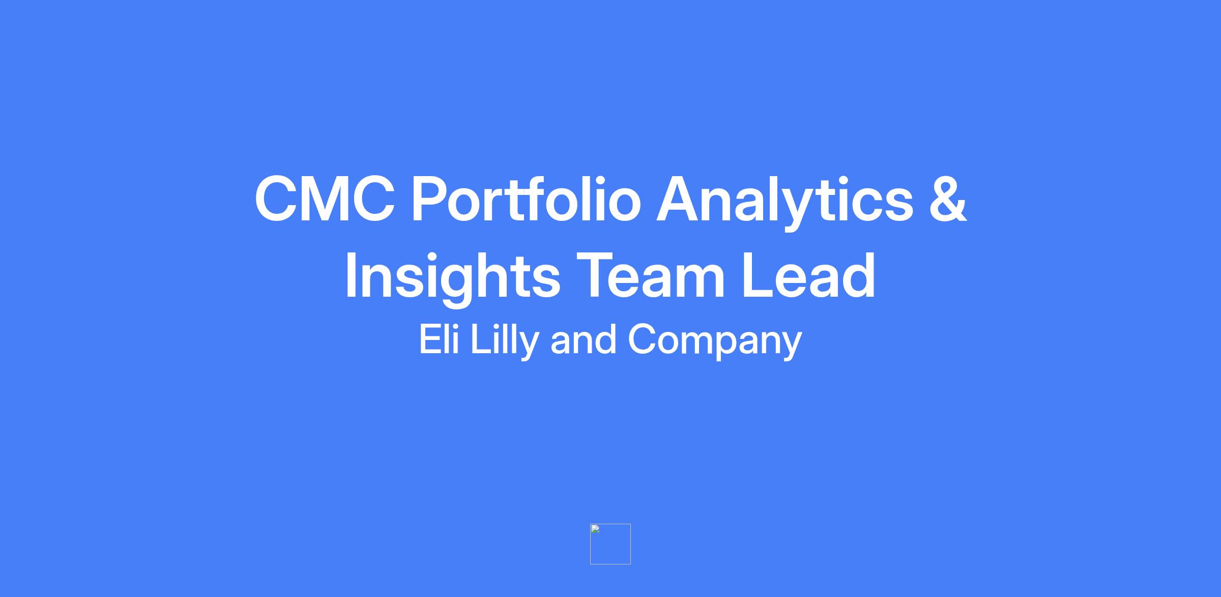 CMC Portfolio Analytics & Insights Team Lead. Lead transformation of CMC portfolio data into a strategic asset, build and lead a high-impact team responsible for analytics, forecasting, data infrastructure, and insight generation to enable data-driven decision-making across the CMC organization.