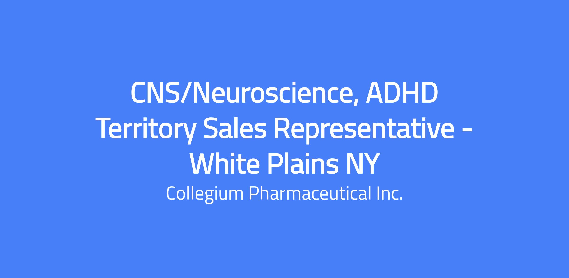 CNS/Neuroscience, ADHD Territory Sales Representative - White Plains NY