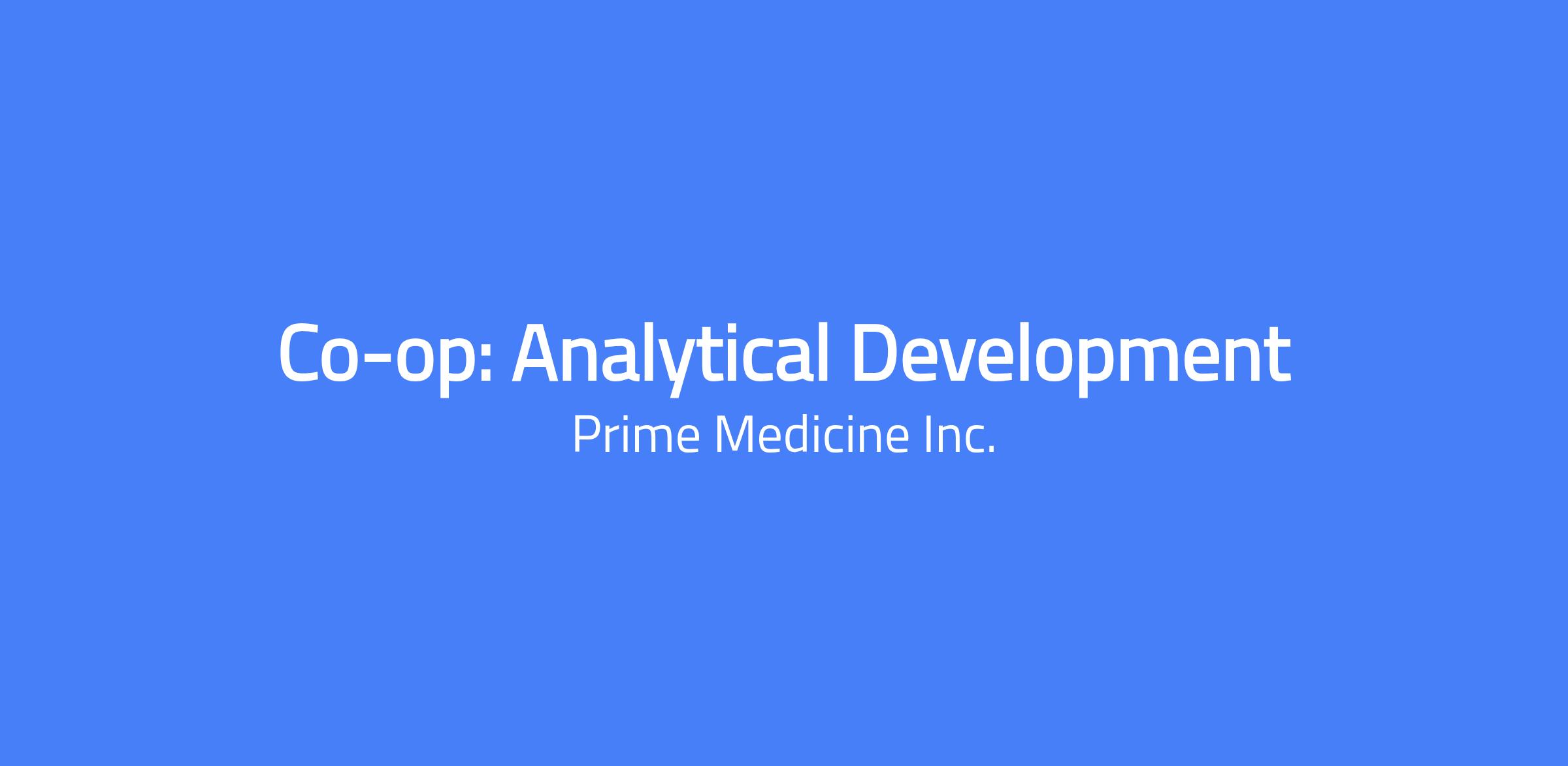 Prime Medicine is seeking a diligent, motivated, and enthusiastic co-op for the Fall 2026 cycle who has interest in state-of-the-art analytical technologies including HPLC, LC-MS, and capillary electrophoresis to join the analytical development (AD) team. The successful candidate will be able to participate in the development of separation-based analytical methods for the Prime Editor delivery platform and work cross-functionally to advance the Prime pipeline. Also, this co-op student will have hands-on opportunities to gain exposure to a broader range of analytical techniques (such as flow cytometry), gaining familiarity with scientific and regulatory requirements for phase-appropriate analytical testing. There will also be valuable opportunities to participate in other cross-functional projects that are crucial to the success of in vivo and ex vivo gene editing therapeutic drug development.
