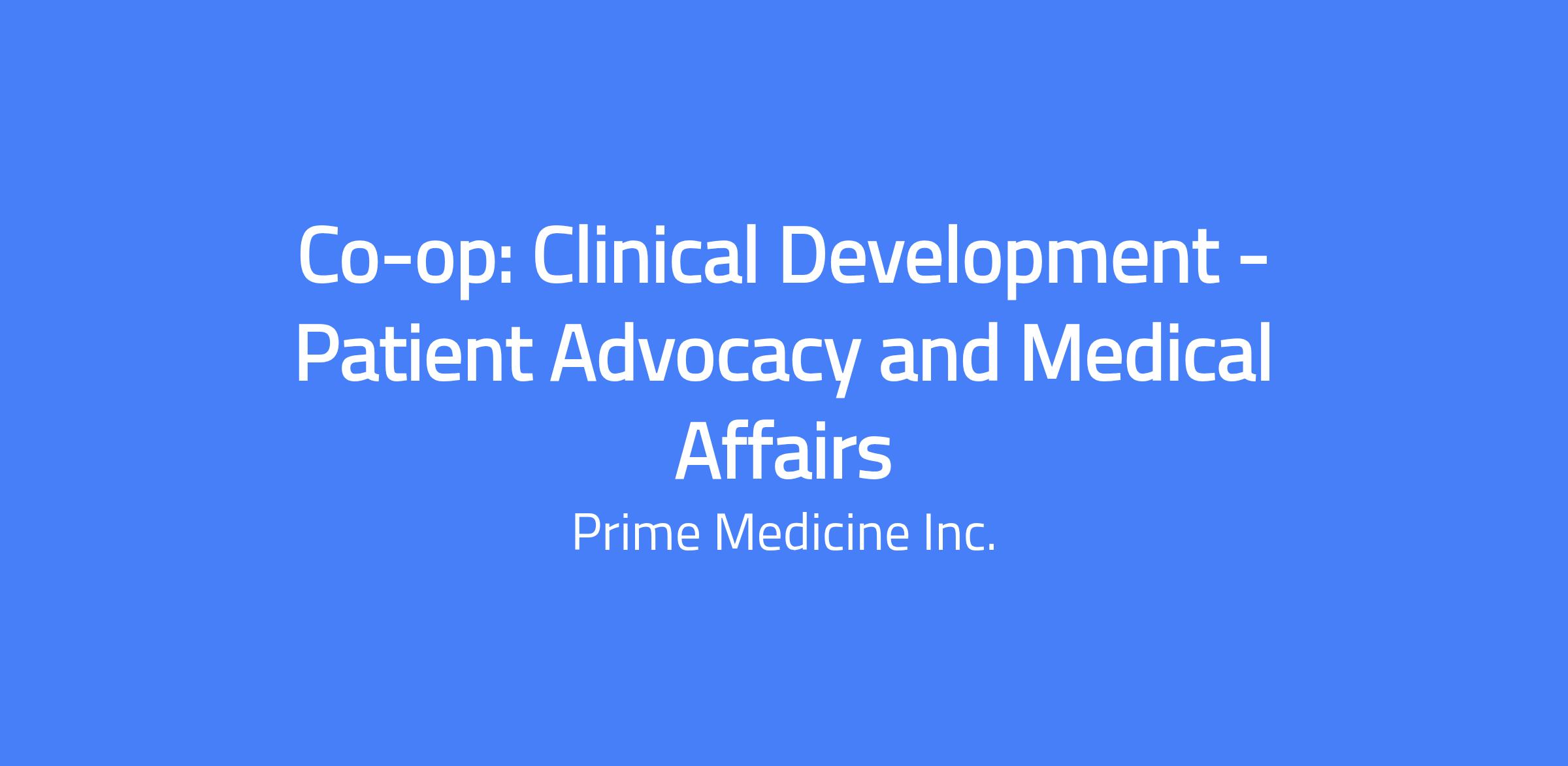 Prime Medicine is seeking a co-op student to join the Patient Advocacy and Medical Affairs team. This individual will support efforts to build strong relationships with patient communities and collaborate with patient advocacy organizations across Prime’s therapeutic programs. The co-op will contribute to initiatives that integrate the patient perspective into clinical and regulatory strategy. The role will also provide exposure to core medical affairs activities, including conference and publication planning, Key Opinion Leader (KOL) engagement, and clinical study support as it relates to patient engagement. The ideal candidate will be highly motivated, thoughtful, and collaborative, with the ability to engage respectfully with internal and external stakeholders. They will have a strong interest in rare diseases, genetic medicines, and advancing patient-focused drug development.