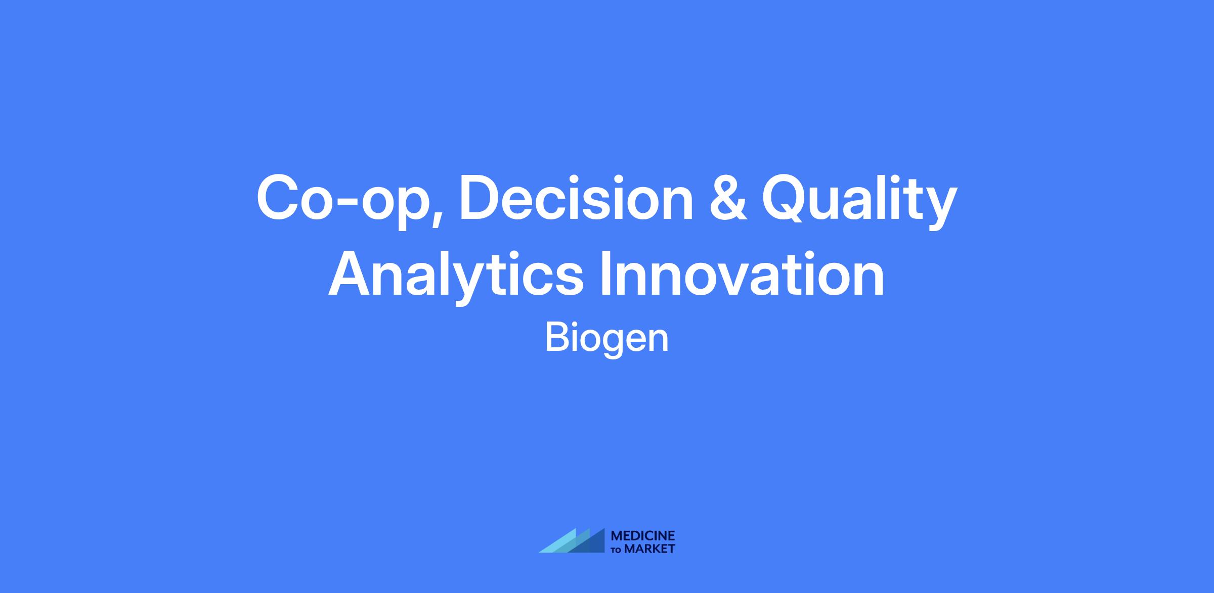 Six-month student Co-op in Decision & Quality Analytics Innovation (DQAI) at Biogen, January–June 2026. Resume review begins October 2025. The DQAI team drives data-driven insights from trusted data to maximize quality, efficiency, and application of analytics across the RDM portfolio and Quality Management Systems, focusing on data management, advanced analytics, business intelligence, and metrics management.