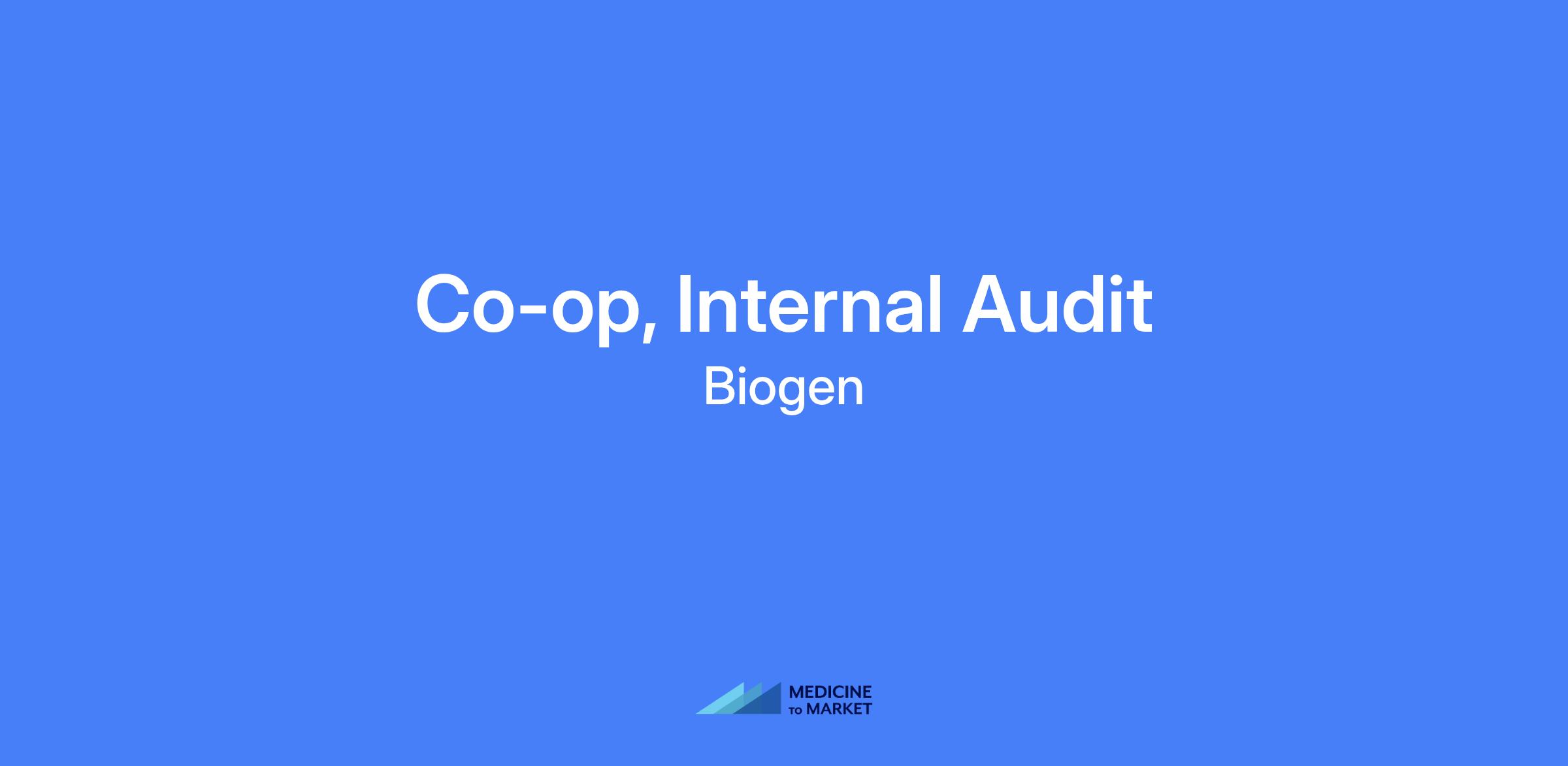 Co-op, Internal Audit. This 6-month student role (June–November 2026) supports Biogen’s Internal Audit department, contributing to the assessment of financial reporting reliability, compliance with laws and policies, and the efficiency of business operations. You will be part of audit teams working under the auditor-in-charge to meet audit objectives within deadlines.